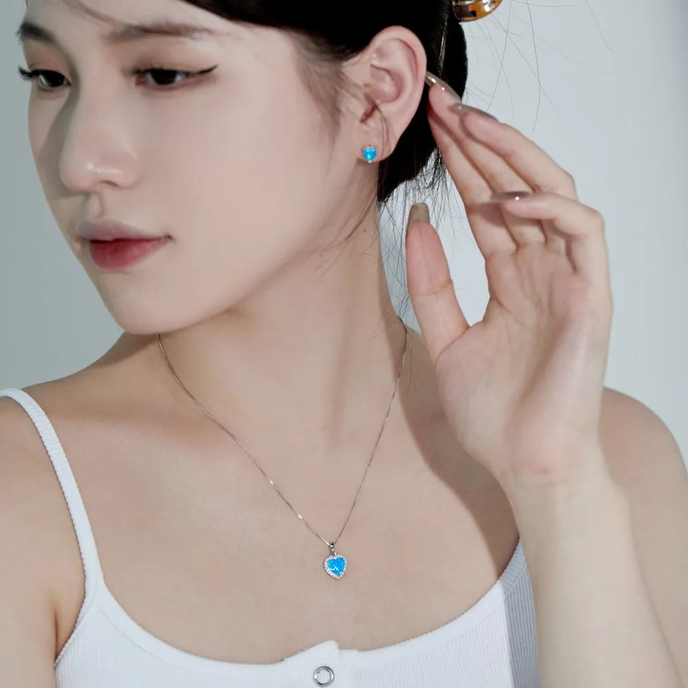 Aetolia Dainty Layering heart shape Choker Custom Charm Women Jewelry 18k Gold Plated blue Opal Pendant Necklaces for women