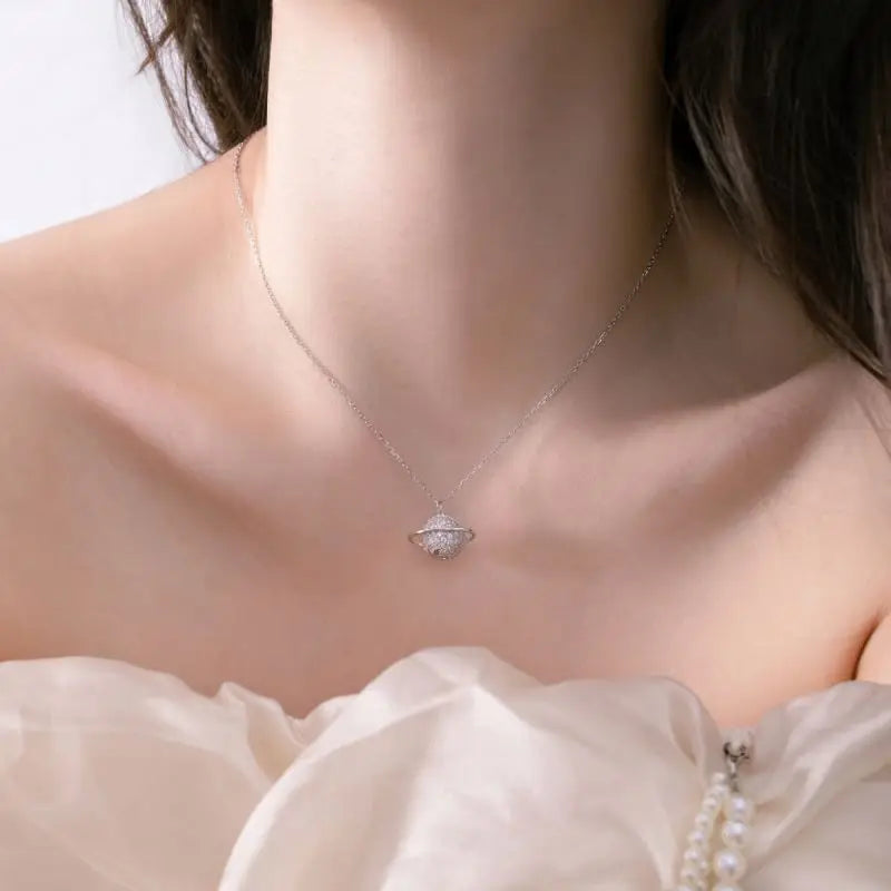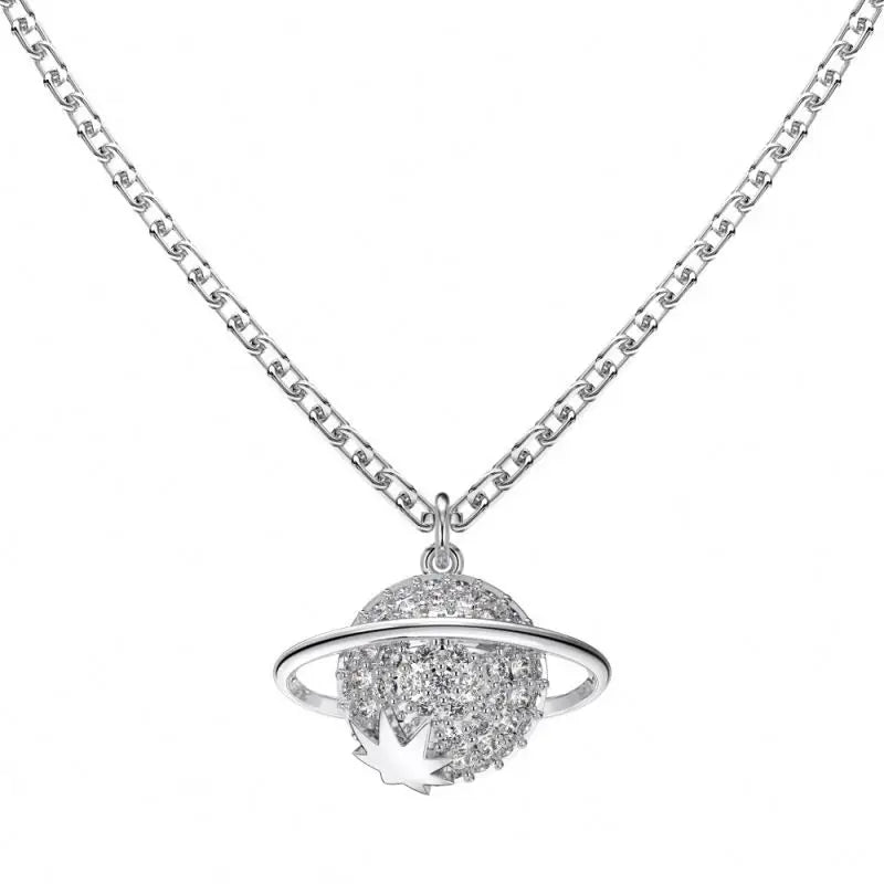 Aetolia Delicate Jewelry Wholesale 18K Gold Plated Necklace S925 Silver Earth Planet Pendant Cz Zircon Charm Necklaces For Women