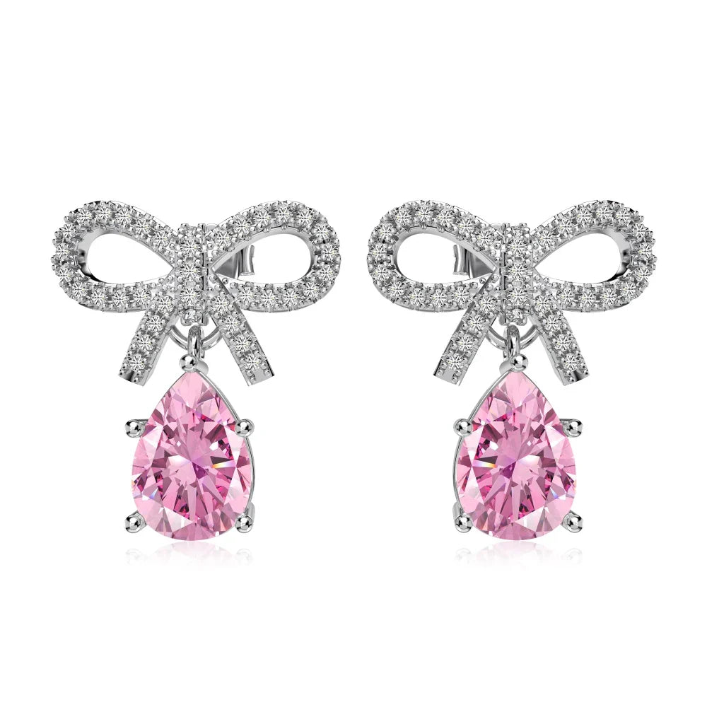 Aetolia Delicate Nickel Free Sweet Pink S925 Silver Cz Cubic Zirconia Stud Earring Pear Bow Tie Drop Earrings For Women Jewelry