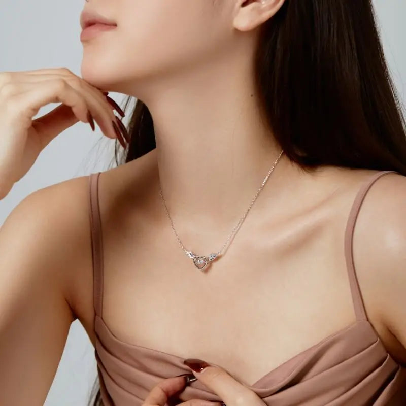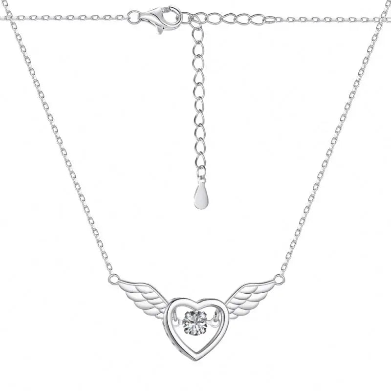 Aetolia Dropshipping 925 Sterling Silver Cubic Zircon Heart Pendant Necklace Wings Chainnecklaces For Women Birthday Gift Jewelry