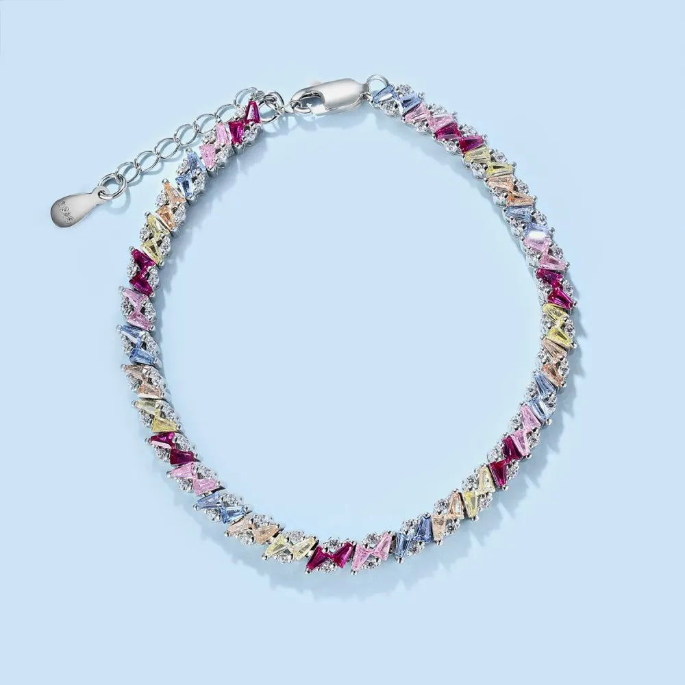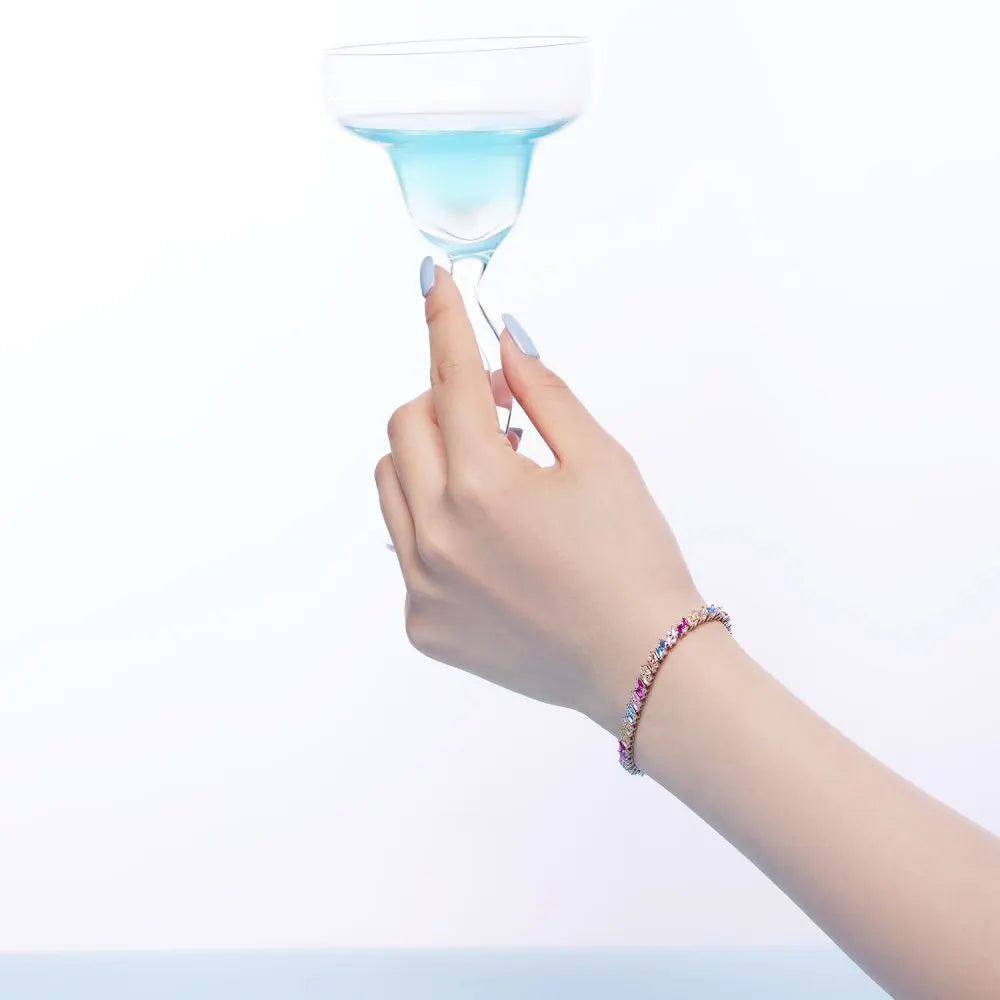 Aetolia Eternity Band Colorful S925 Sterling Silver Bracelet Jewelry Set Cubic Zirconia Pink Stone Diamond Tennis Bracelets Women