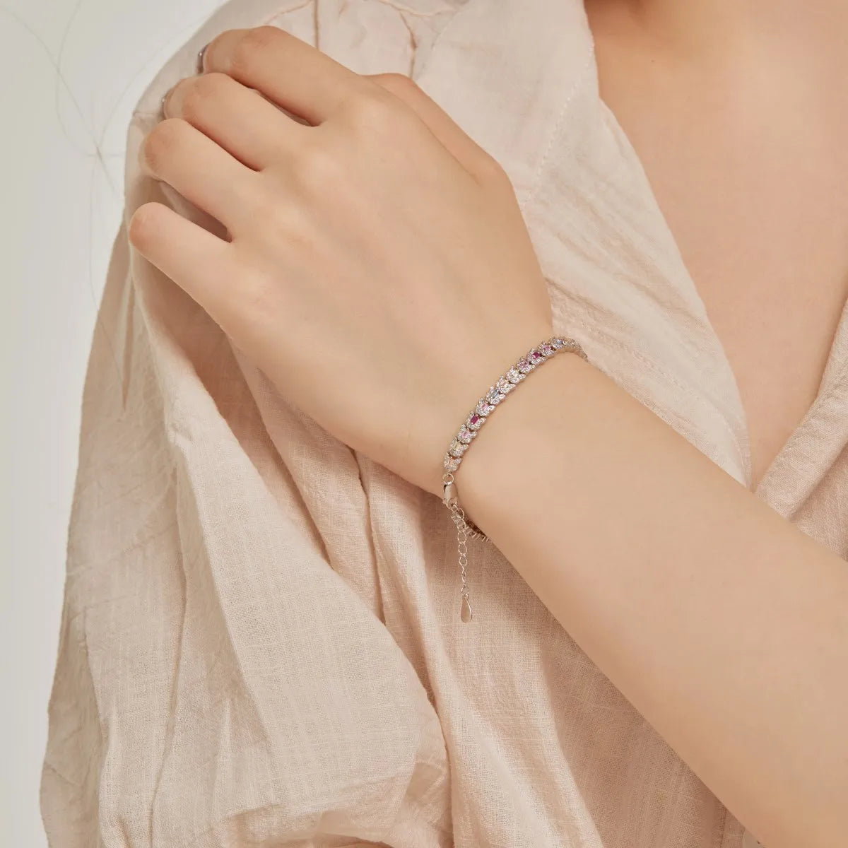 Aetolia Factory Wholesale New Pink Stone Tennis Bracelet Chain Cz Eternity Band Rainbow Cubic Zirconia 925 Silver Bracelets Women