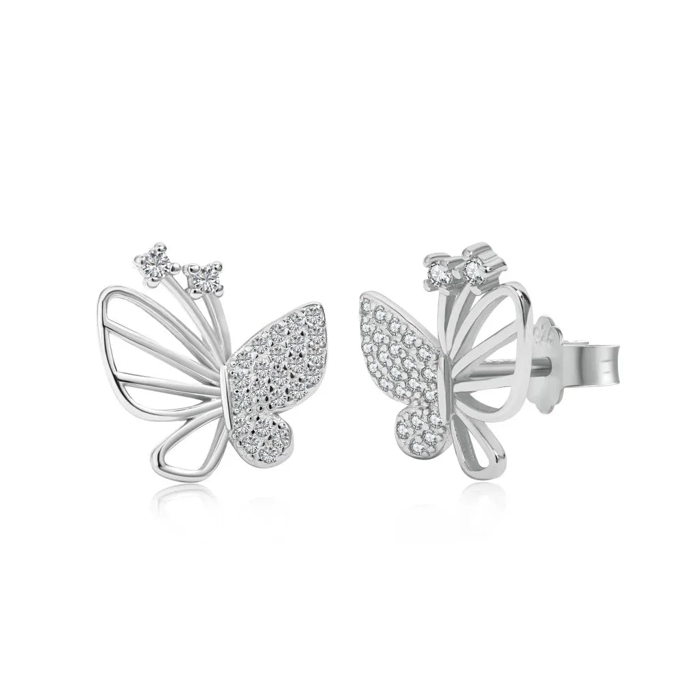 Aetolia Fashion 925 Sterling Silver Earing Stud Large Micro Vintage 5A Cubic Zirconia Woman Custom Diamond Earring Butterfly