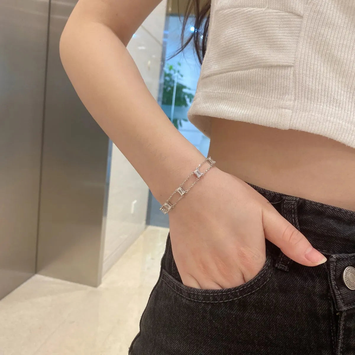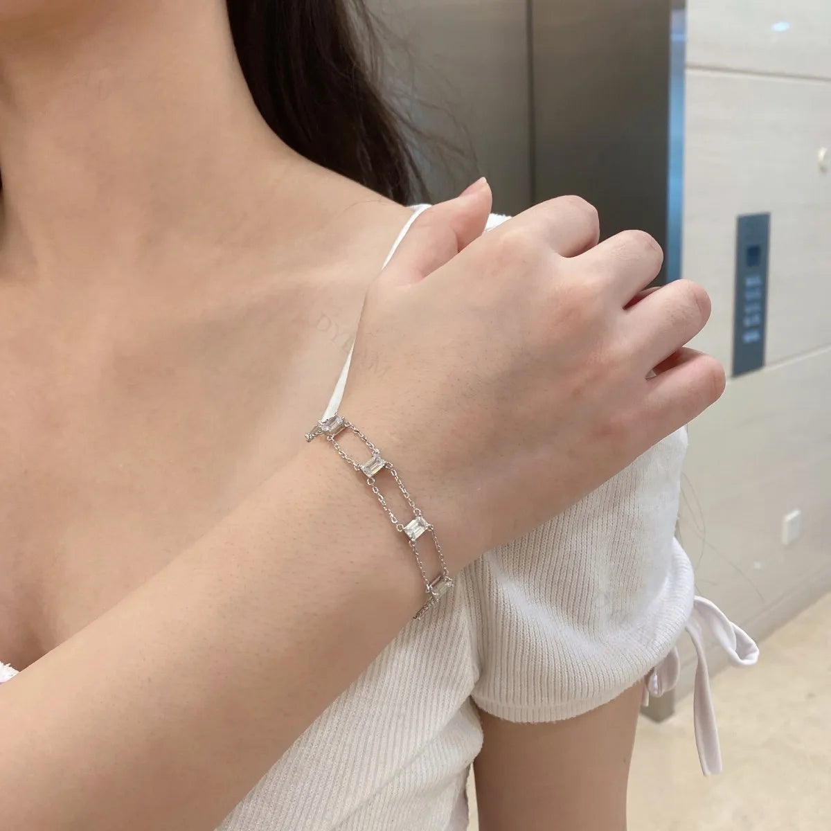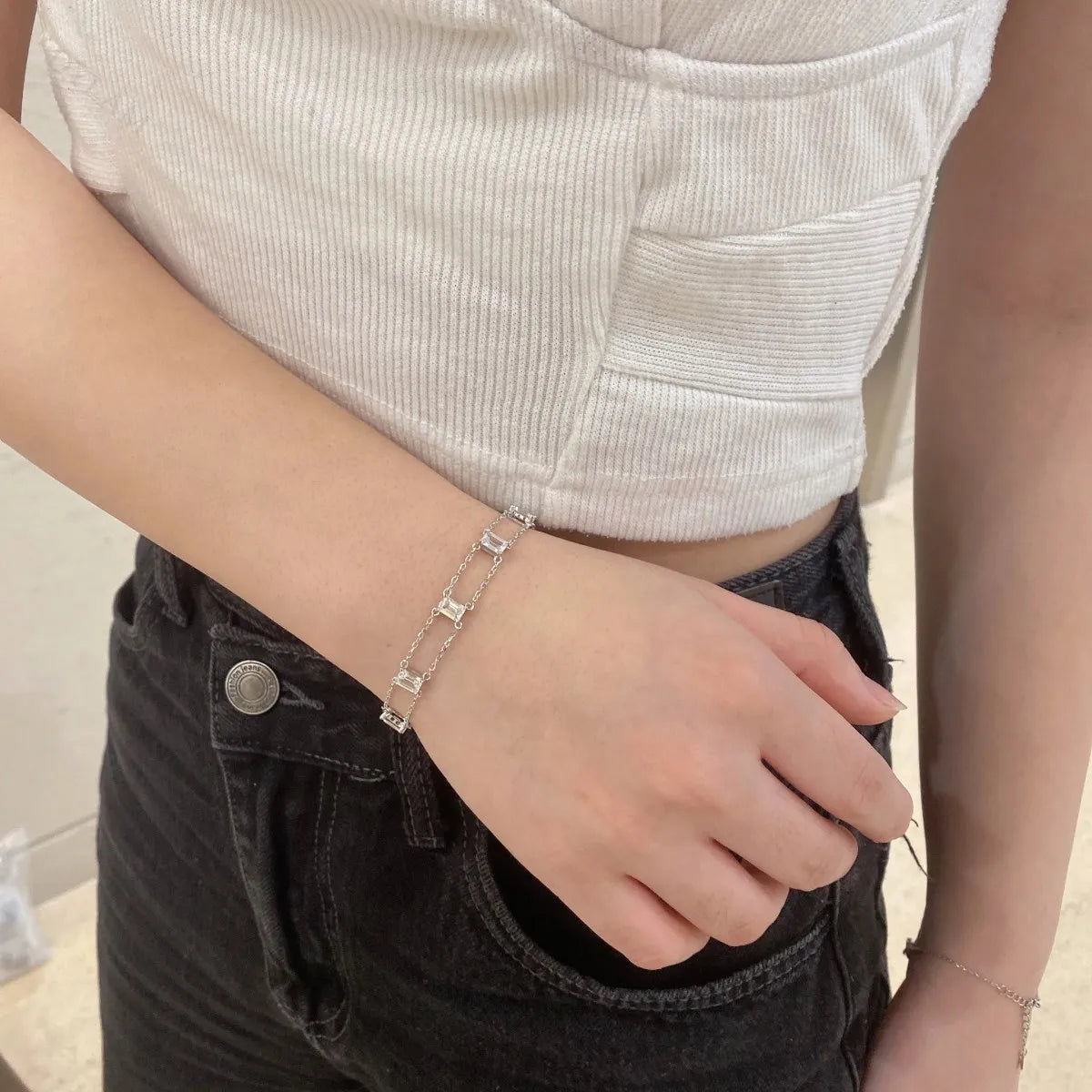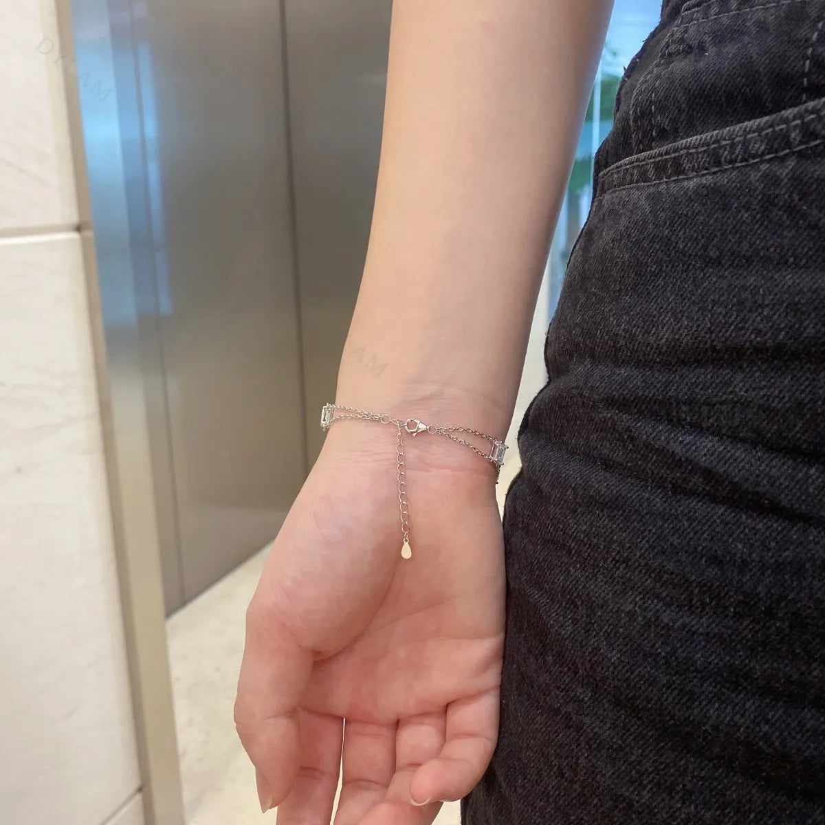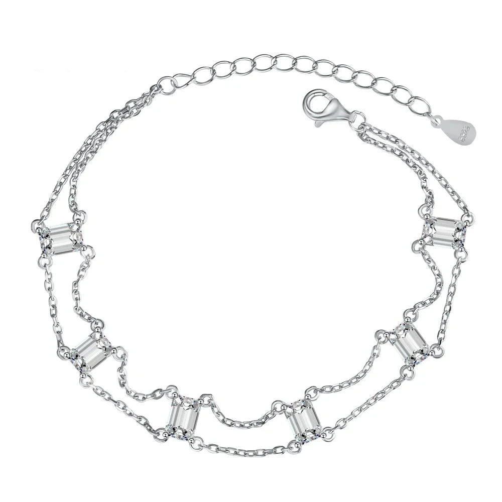 Aetolia Fashion Women Jewelry Rhodium White Gold Plated 925 Sterling Silver Double Layer Hollow Out Chain Bracelets For Girls