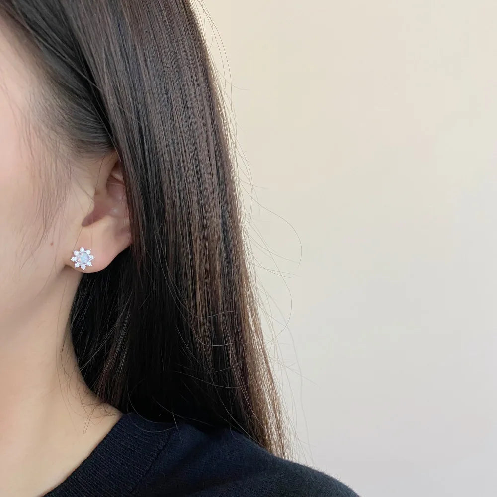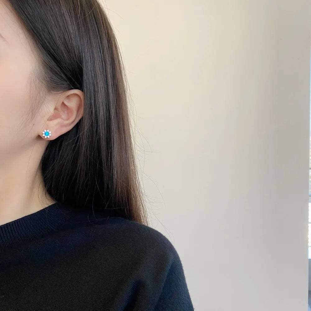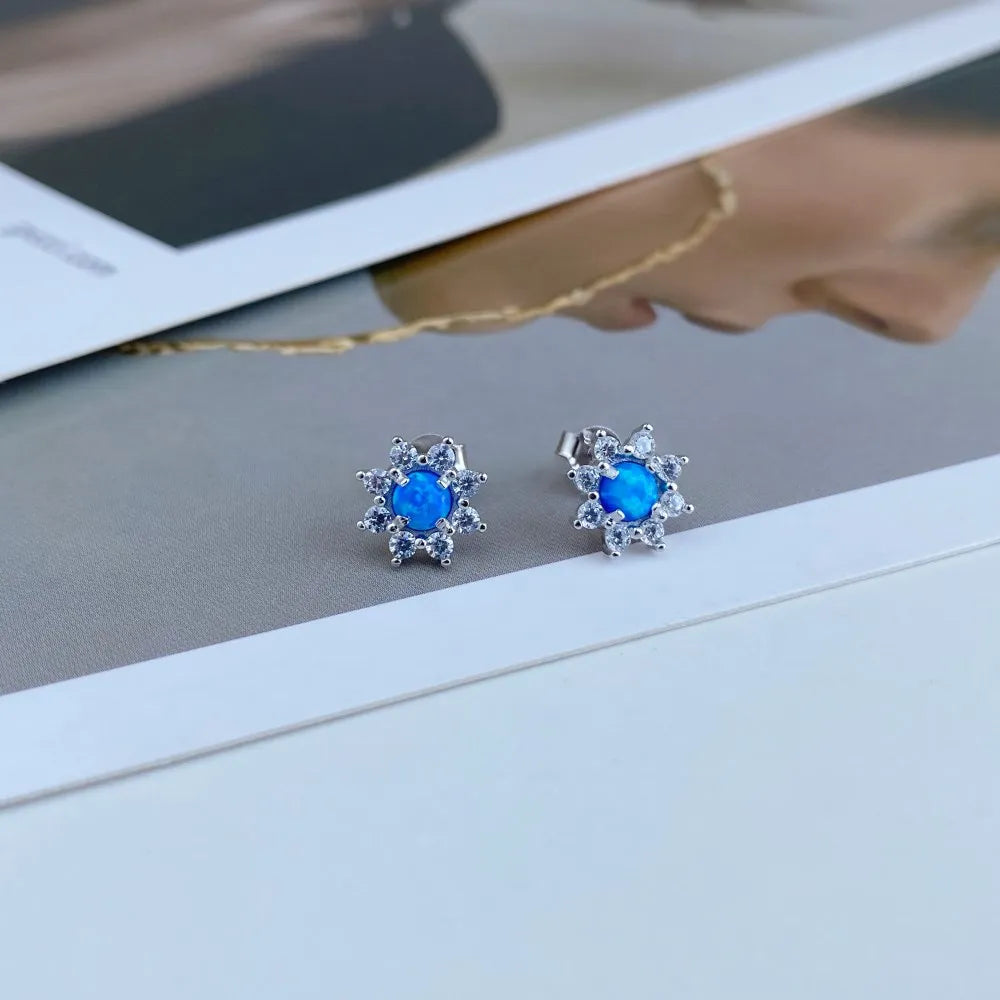 Aetolia fine jewelry 925 Sterling Silver CZ cubic zirconia Flower Earring Flower Shape White Blue Opal Stud Earrings for women