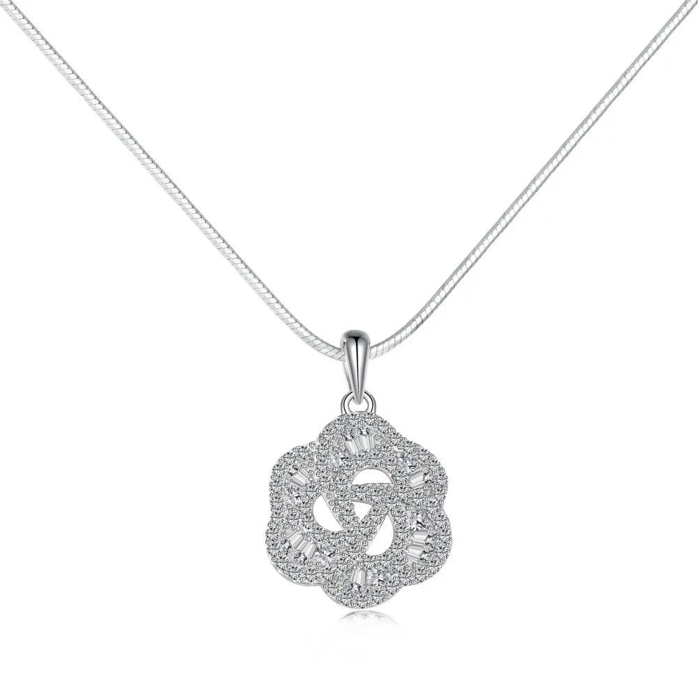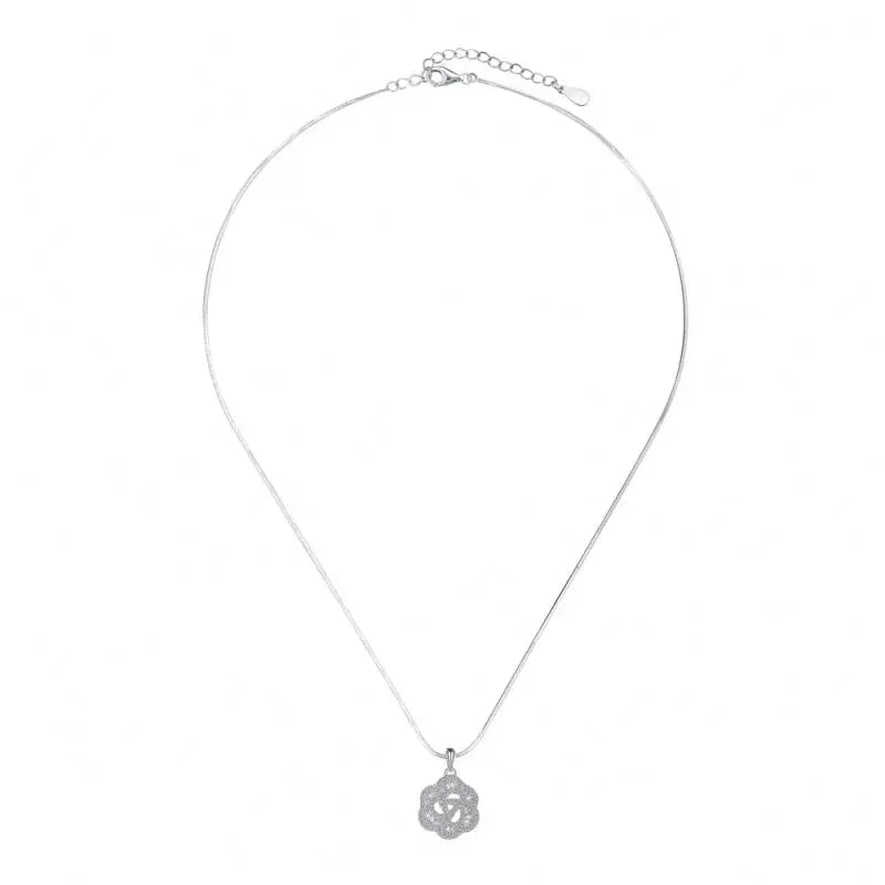 Aetolia Fine Jewelry 925 Sterling Silver Hollow Pattern Rose Pendant Necklace Shiny Zircon Flower Necklaces Chain For Women