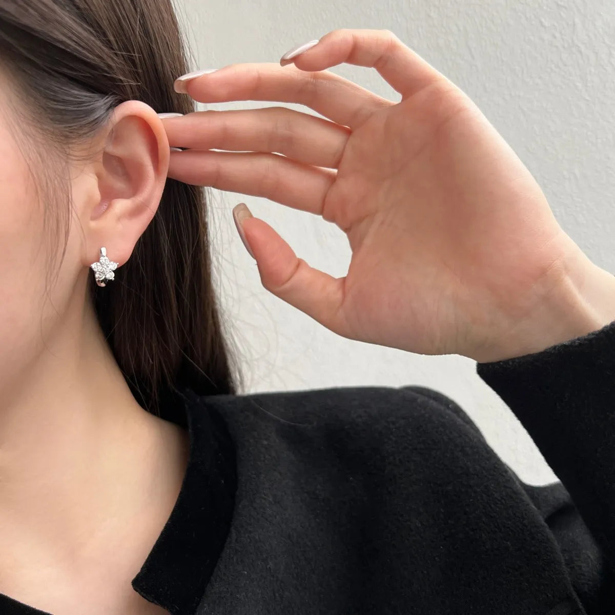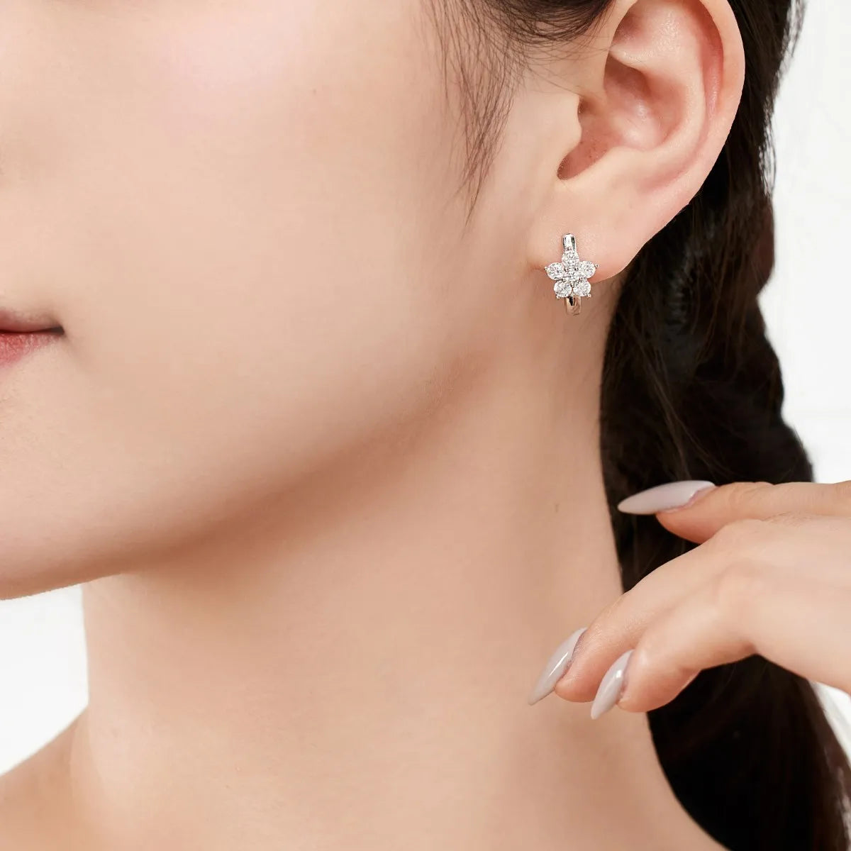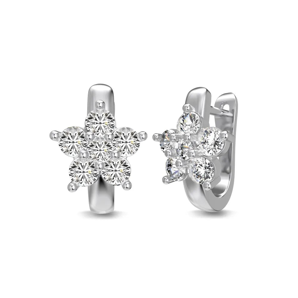 Aetolia Fine Jewelry Cz Cubic Zircon Stud Earrings Star Shape Rhodium Plated S925 Sterling Silver Huggie Earrings For Women