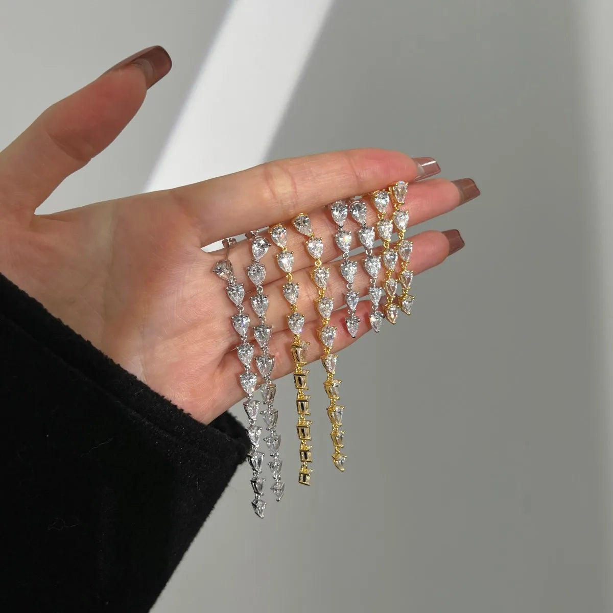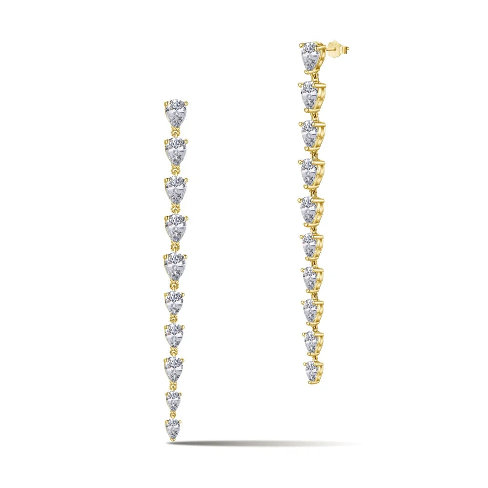 Aetolia Fine Jewelry S925 Silver Pear Earring With Cubic Zircon Long Link Chain 18K Gold Plated Stud Drop Earrings For Women
