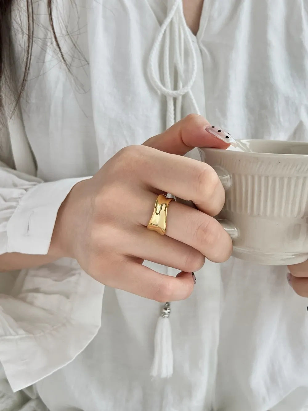 Aetolia Fine Minimalist Jewelry S925 Silver Rhodium 18K Gold Plated Irregular Wide Concave Convex Adjustable Women Rings for women