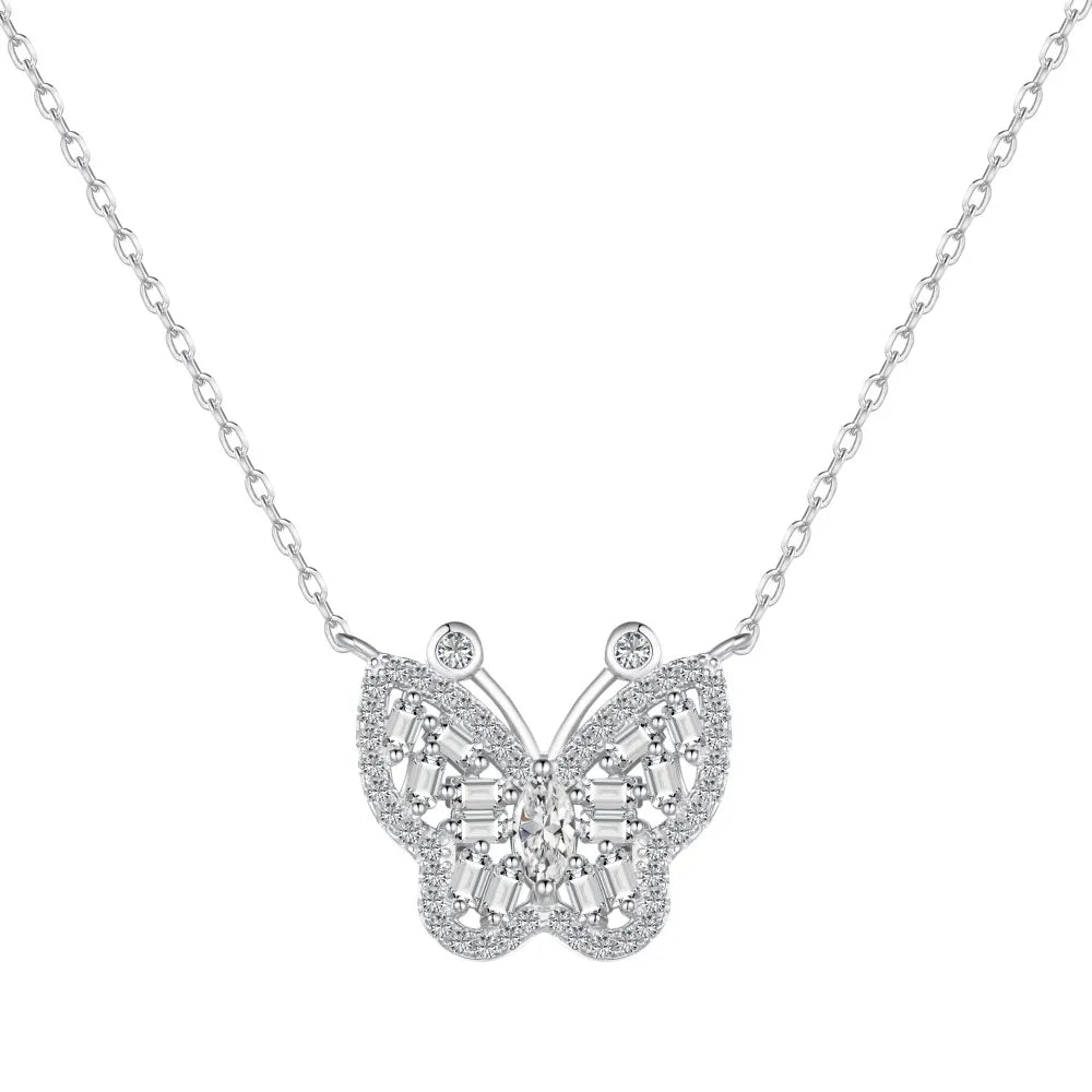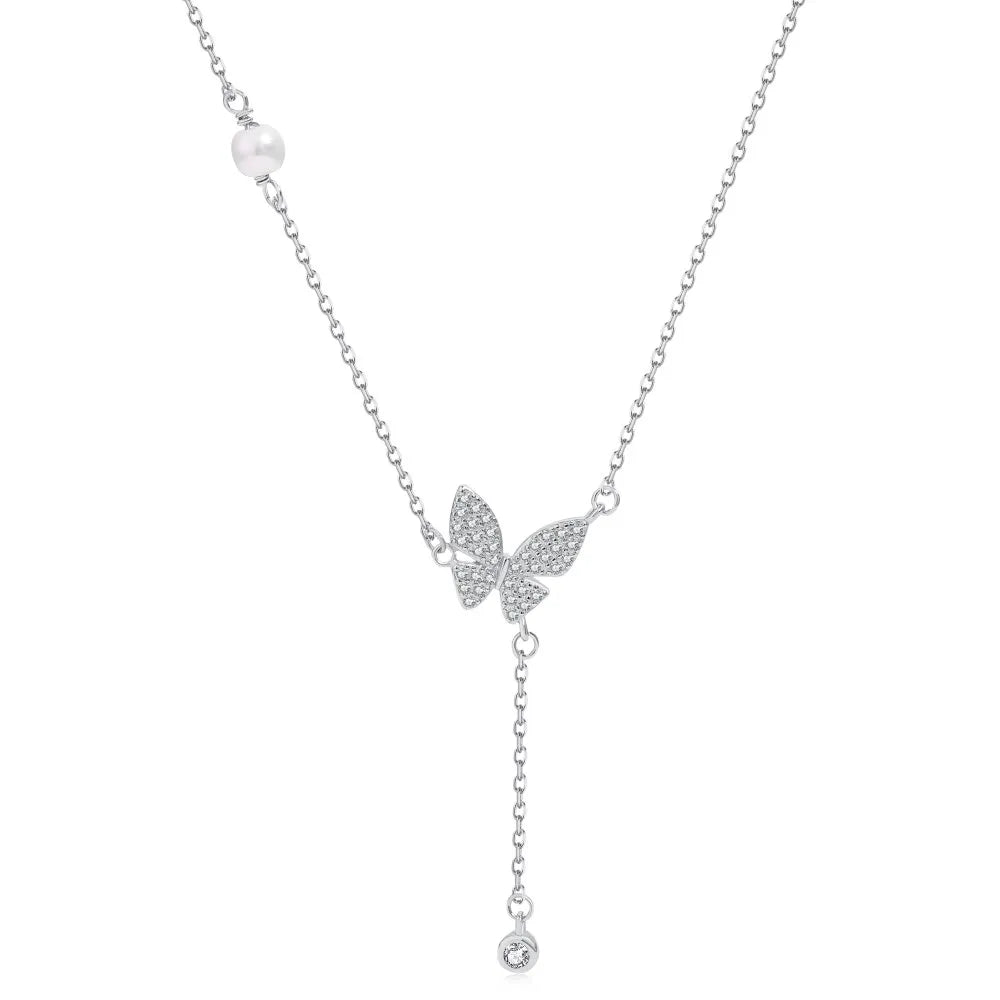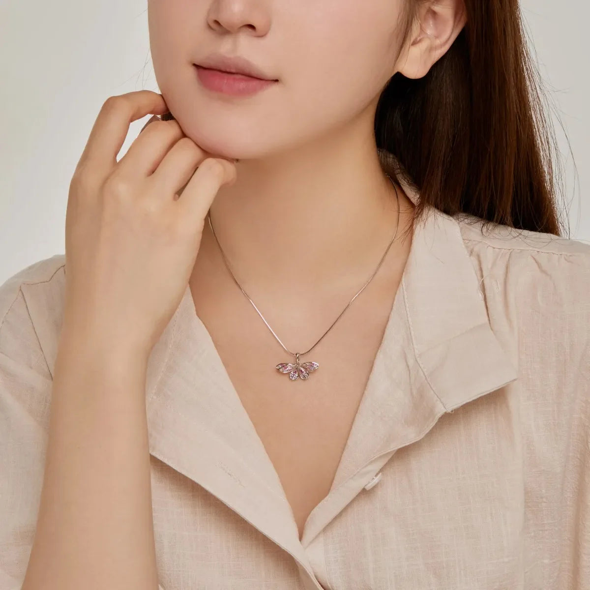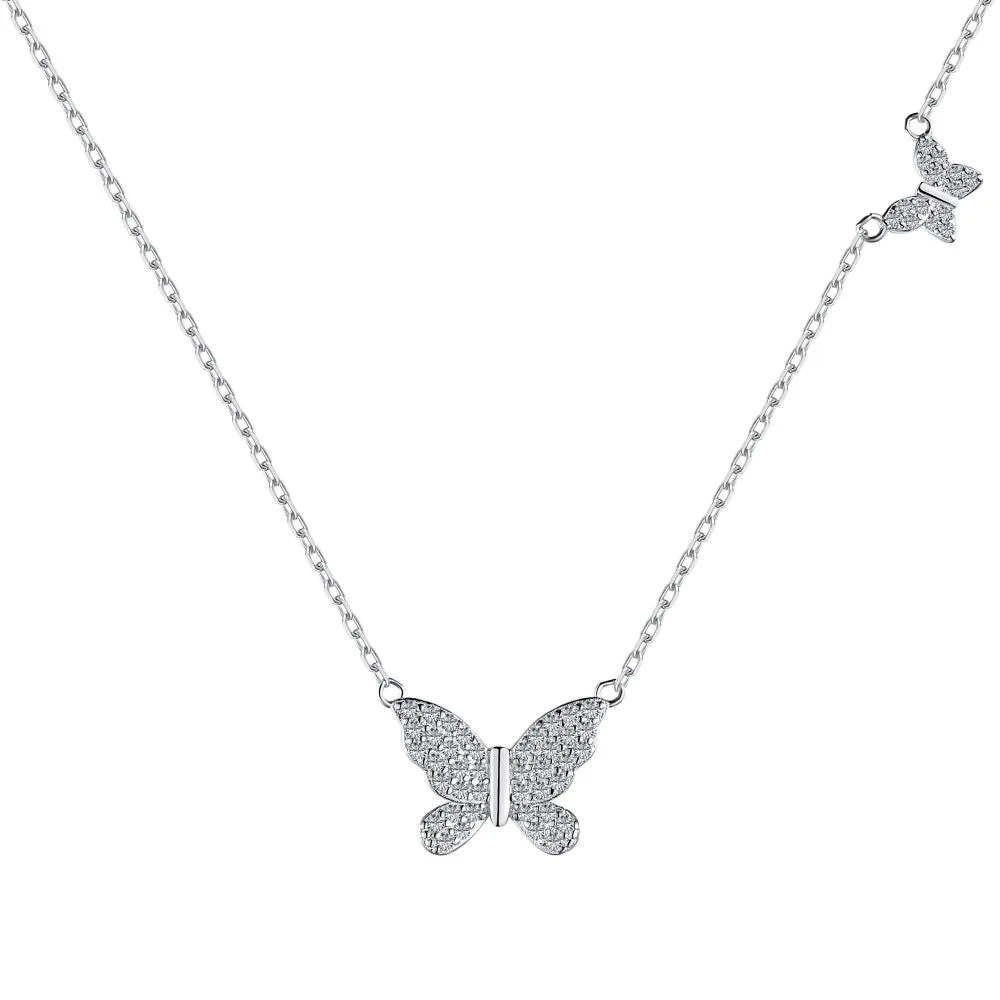 Aetolia High Quality Colorful Butterfly Bow Necklace Set S925 Sterling Silver Simple Clavicle Chain Necklaces Pendants For Women