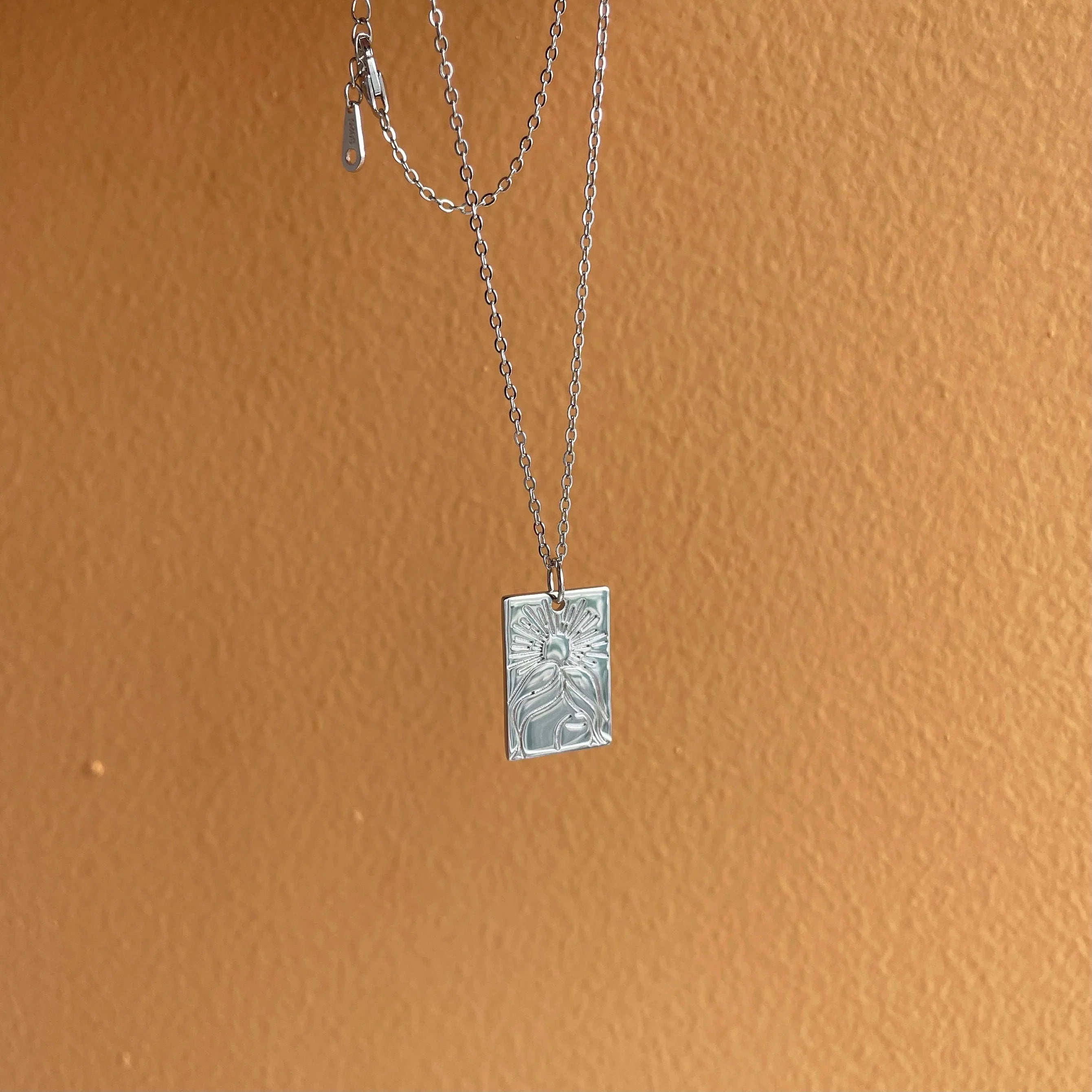 Aetolia High Quality I'm in love with the world Warm Blessing Sterling Silver 925 Necklaces Rectangle Pendant Necklace for Women
