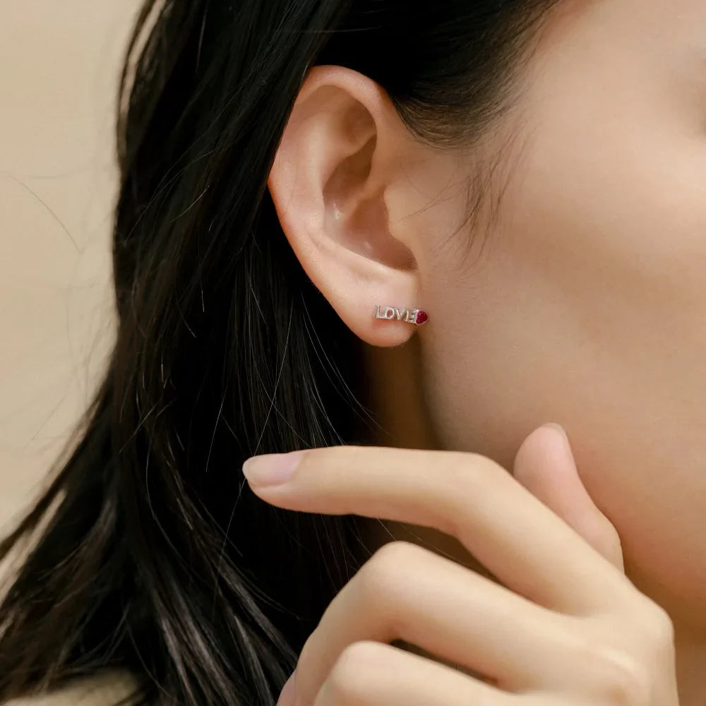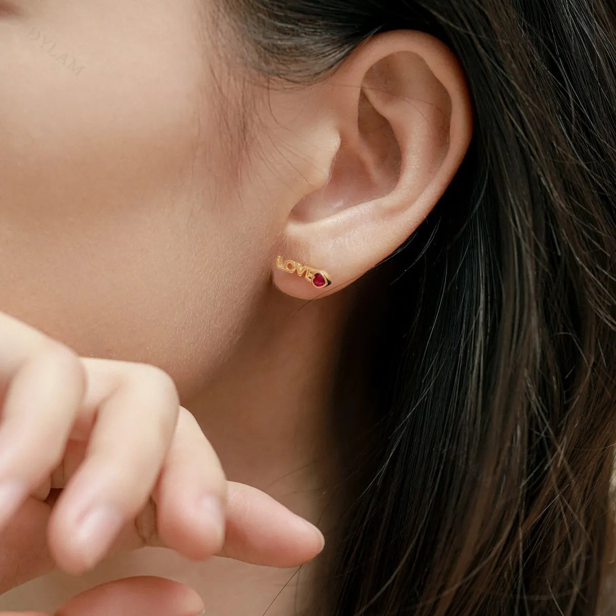 Aetolia High Quality Sterling 925 Silver Love Red Heart Zircon Fashion Jewelry Letter Gold Plated Stud Earrings