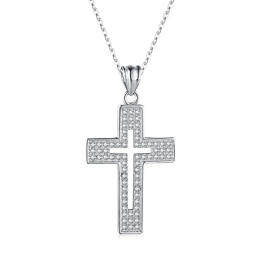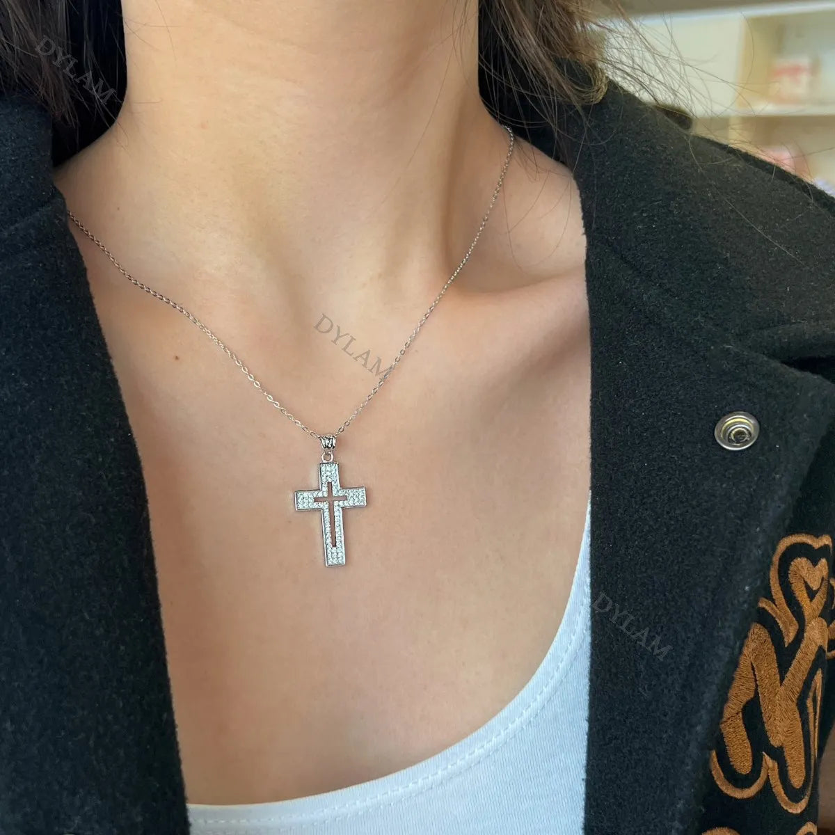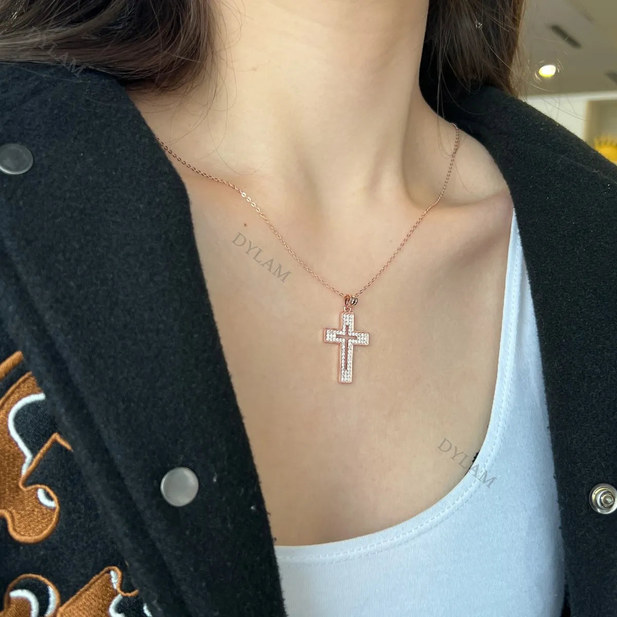 Aetolia Hollow Crucifix Jesus Cross AAAAA CZ Pendant Women 18k Rose Gold Jewelry 925 Sterling Silver Cross Necklace