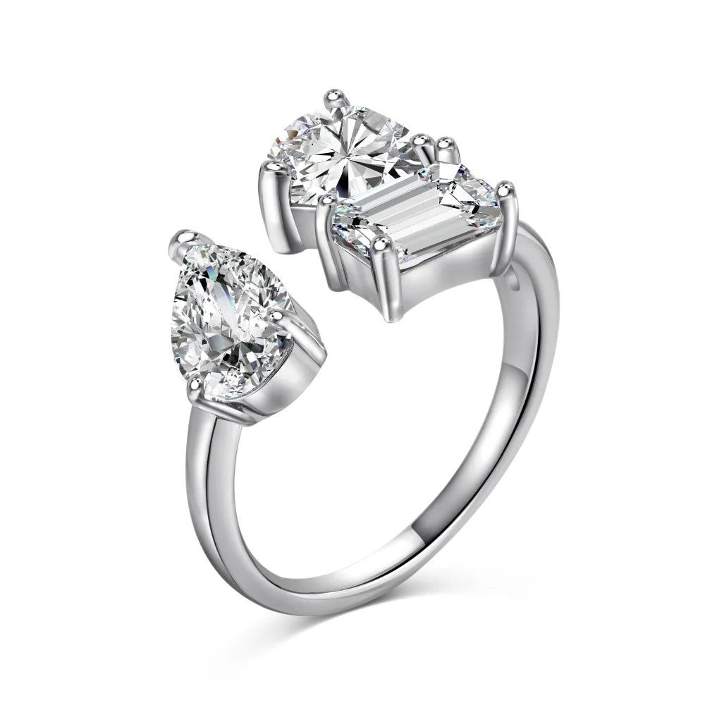 Aetolia Hot Sale 925 Silver Cubic Zirconia Irregular Heart Pear Shape Ring Open Adjustable Engagement Zirconia Rings For Women