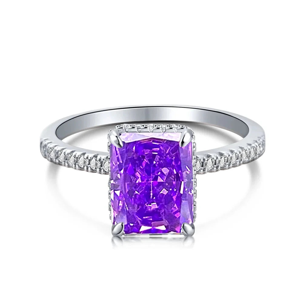 Aetolia Hot Sale 925 Sterling Silver Diamond Jewelry For Woman Wedding Rectangular Purple Zircon Engagement Ring