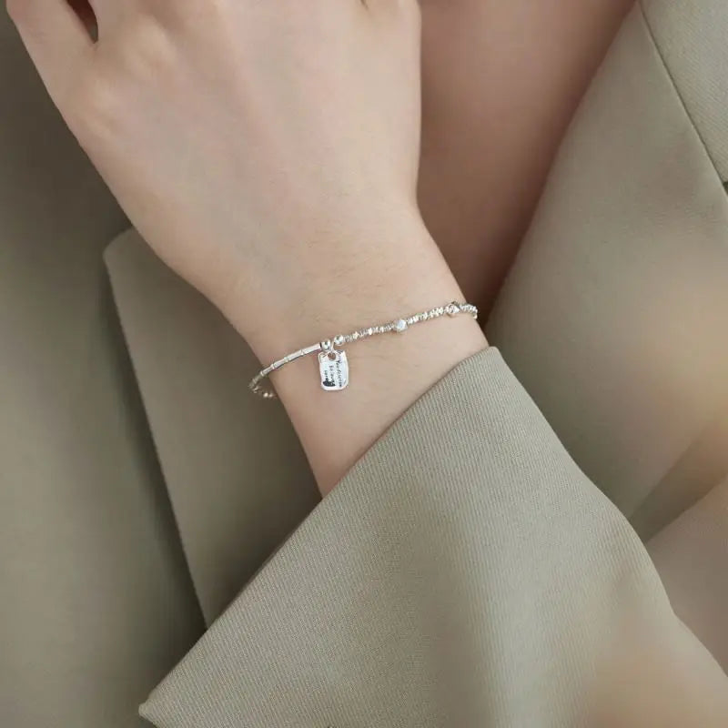 Aetolia Hypoallergenic 925 Sterling Silver bracelet Irregular Broken Beaded Silver Pendant Bracelets Bangles for Women Gifts