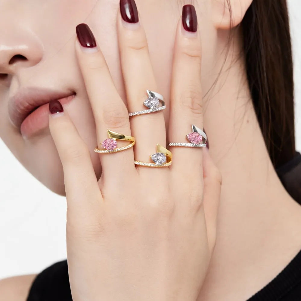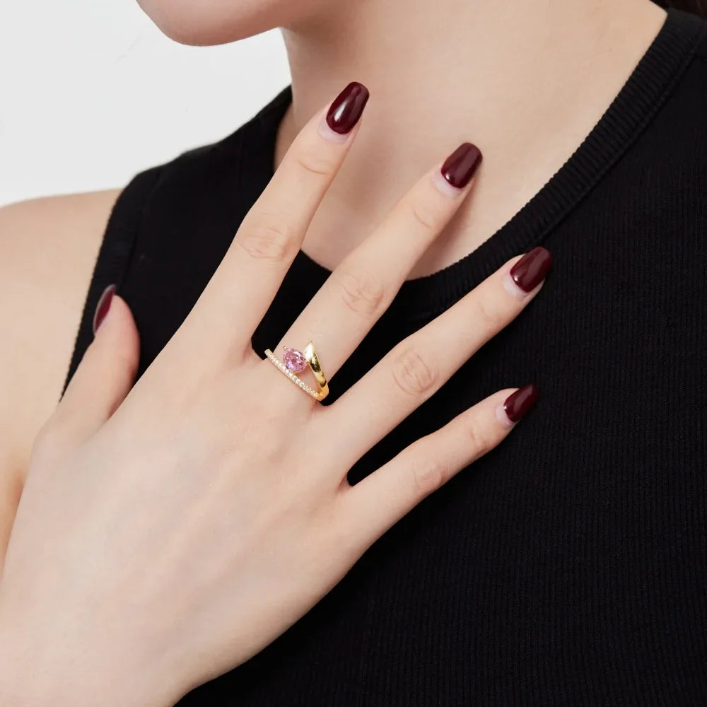 Aetolia In Stock Fine Jewelry S925 Sterling Silver Diamond Engagement Wedding Ring Refinement 18K Gold Pink Rings For Women