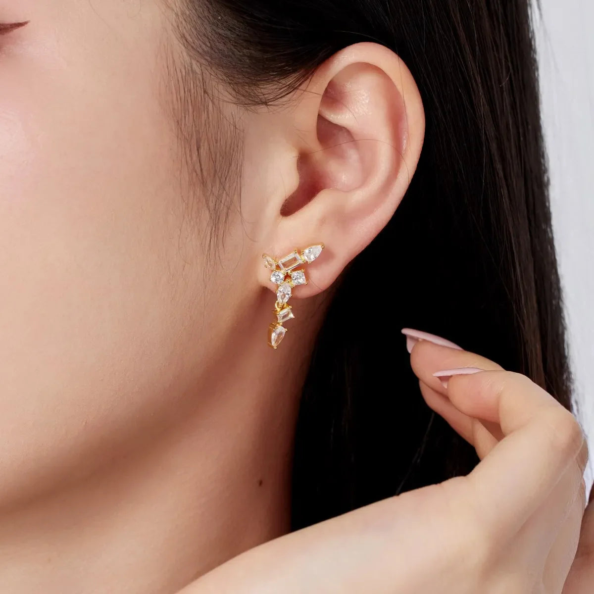 Aetolia Luxury 18K Gold Plated Jewelry S925 Sterling Silver Geometric Tassel Shaped Cz Cubic Zircon Crown Drop Earrings For Women