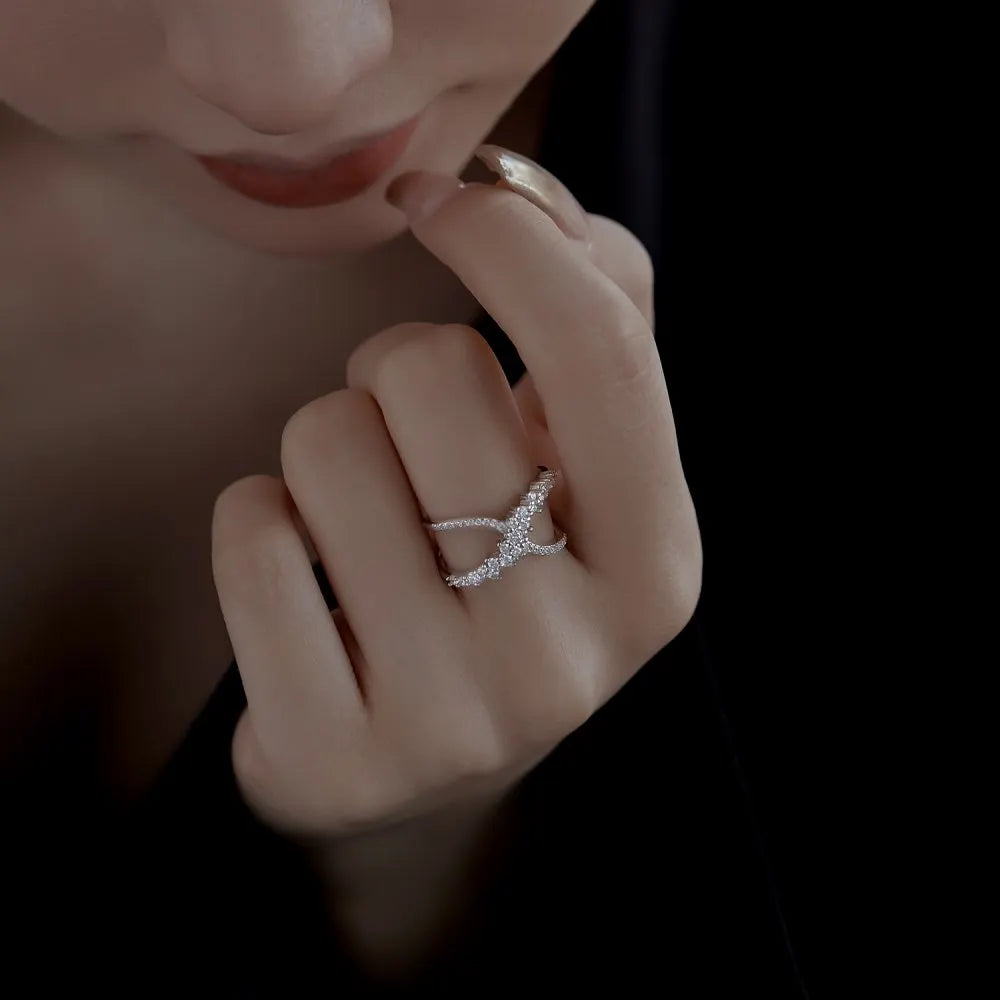 Aetolia Luxury 925 Silver Cross X Shape Women Engagement Ring Cz Cubic Zirconia Stone Elegant Simple Female Jewelry 18K Gold Rings