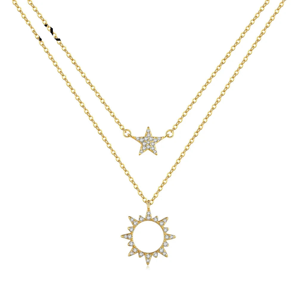 Aetolia Manufacturer Jewelry S925 Sterling Silver 18k Gold Plated Star Sun Pendant Dainty double layer Silver Necklaces