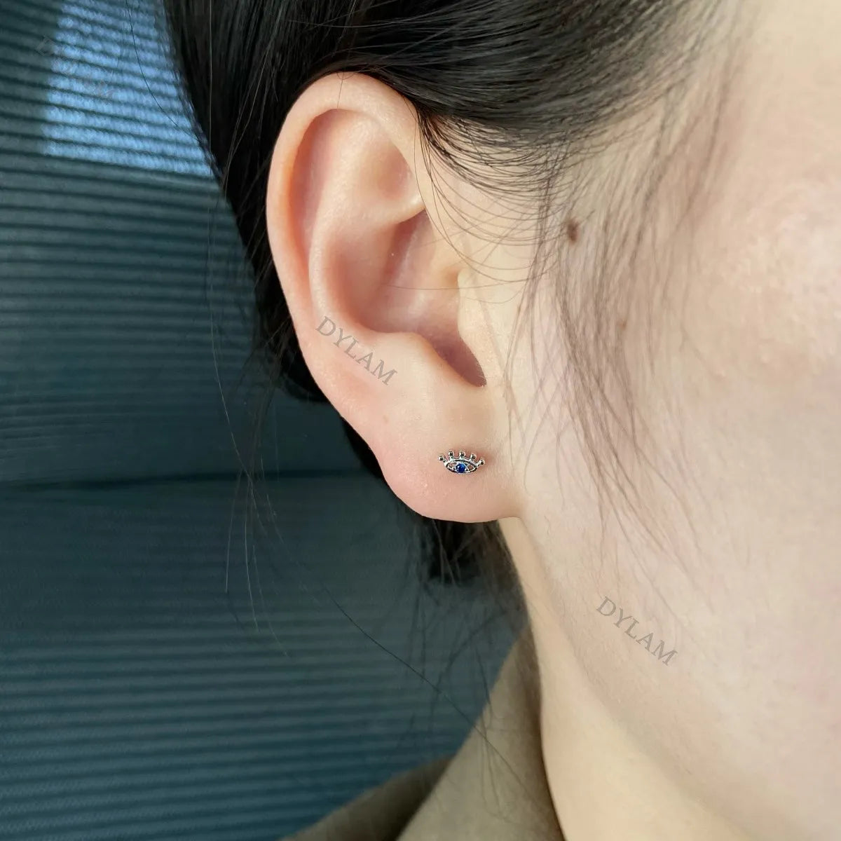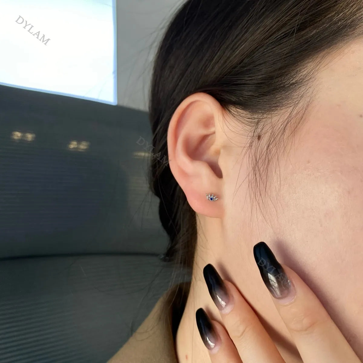 Aetolia Manufacturer Minimalist Devil Jewelry Sterling 925 Silver Rhodium 18k Gold Eye Women Stud Earrings