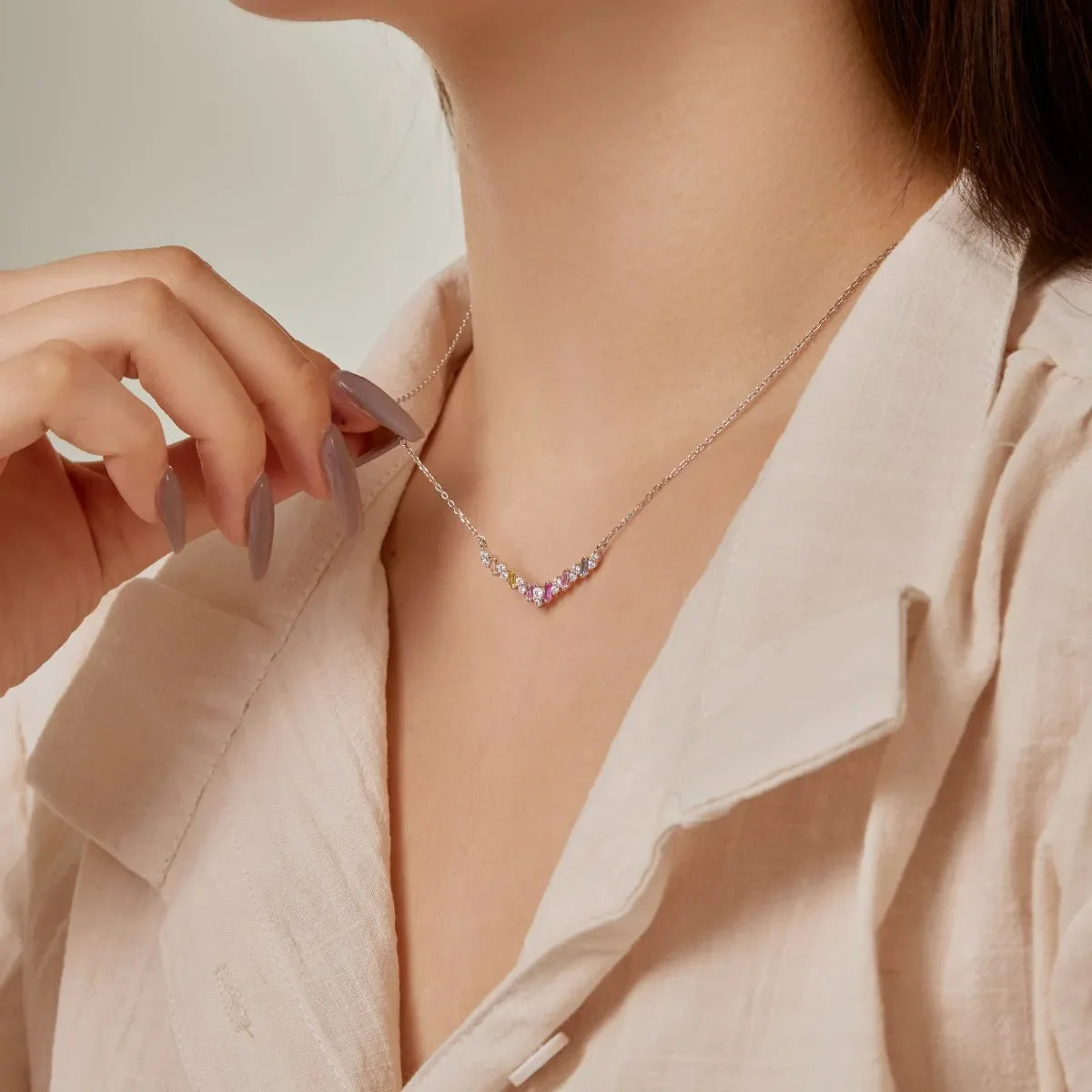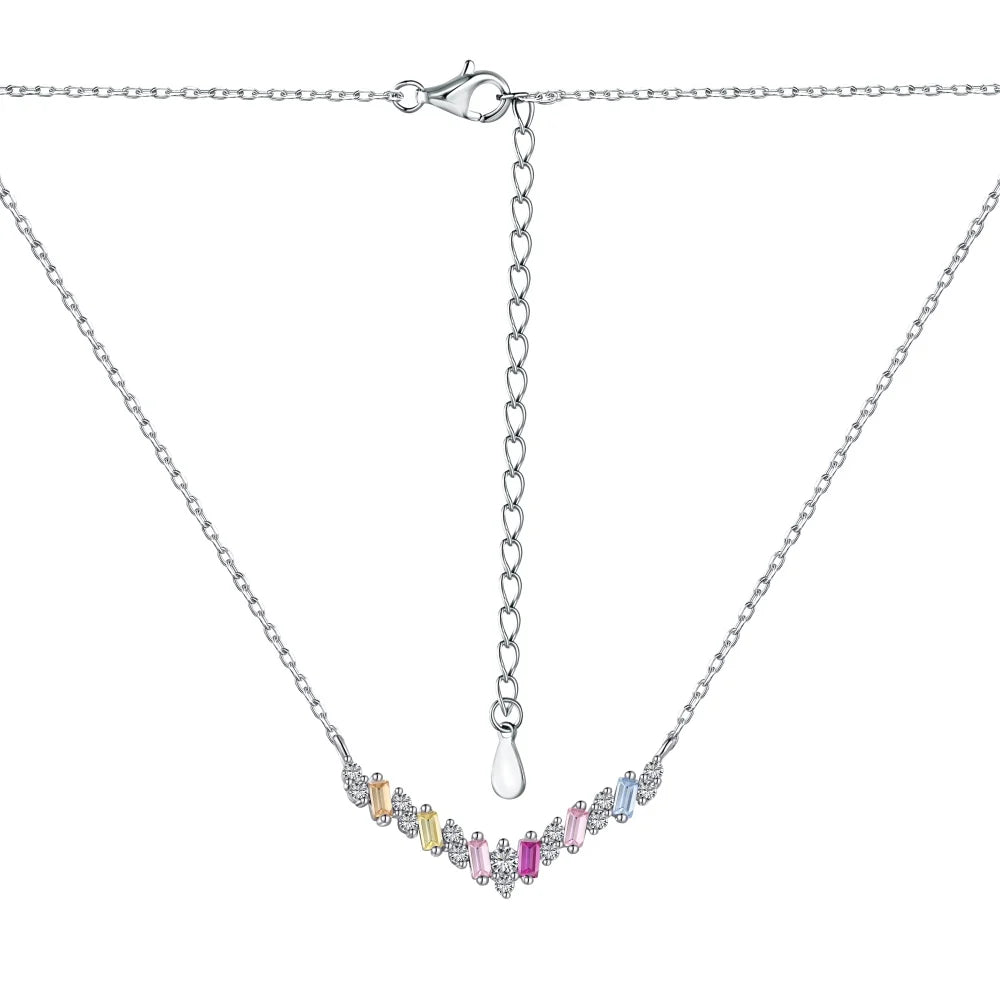 Aetolia Minimalism 925 Sterling Silver Pendant Necklace Jewelry V Shape Colorful Cz Cubic Zircon Charm Necklaces For Women