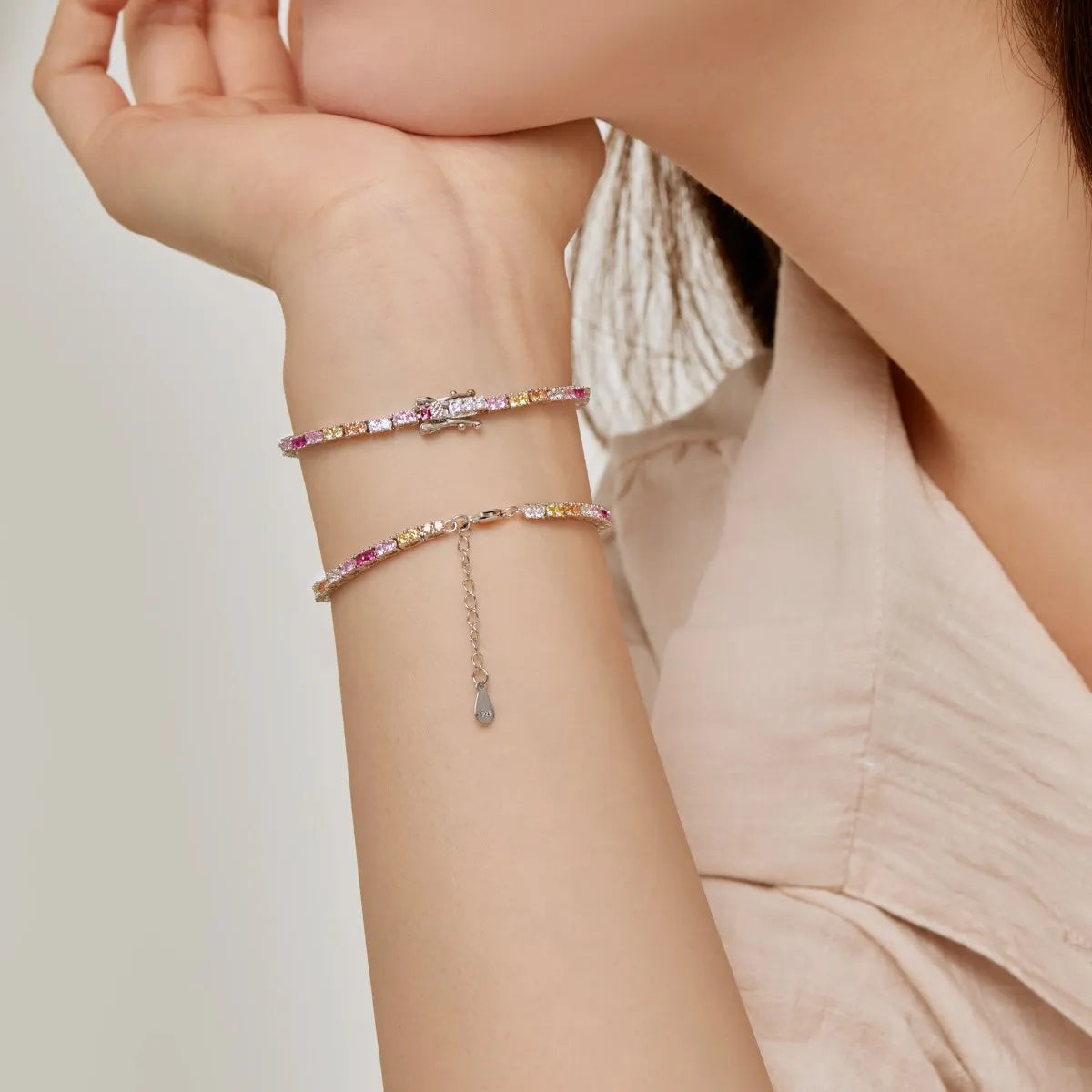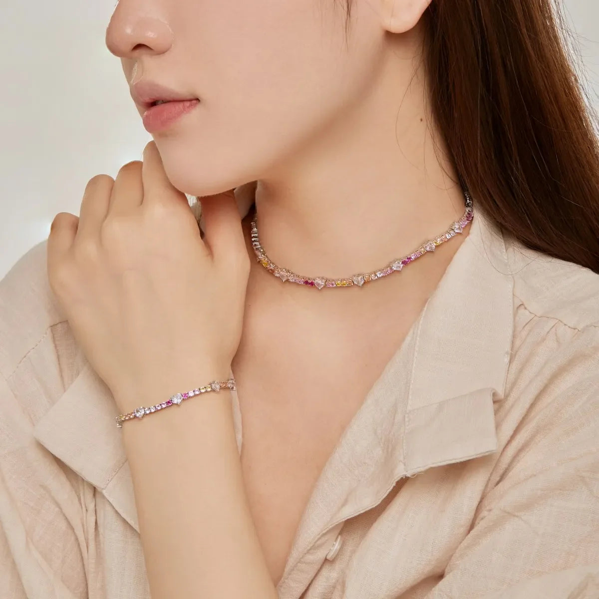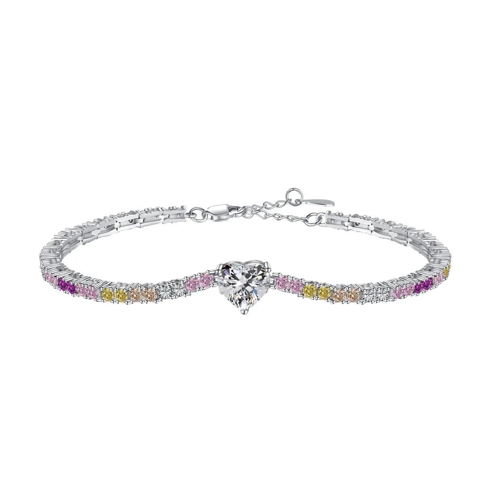 Aetolia Minimalist Adjustable Heart Shape Colorful Diamond Tennis Cubic Zirconia Cz Rainbow Zircon Jewelry Bracelets Bangles Women