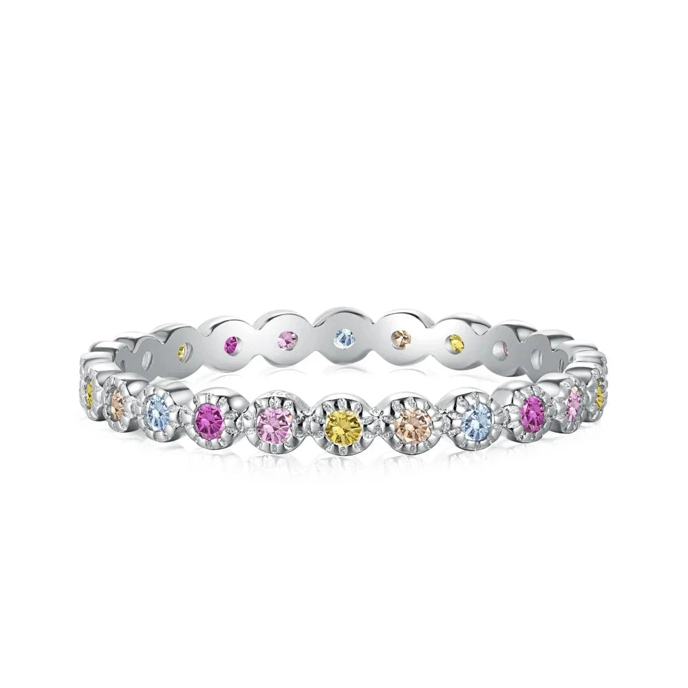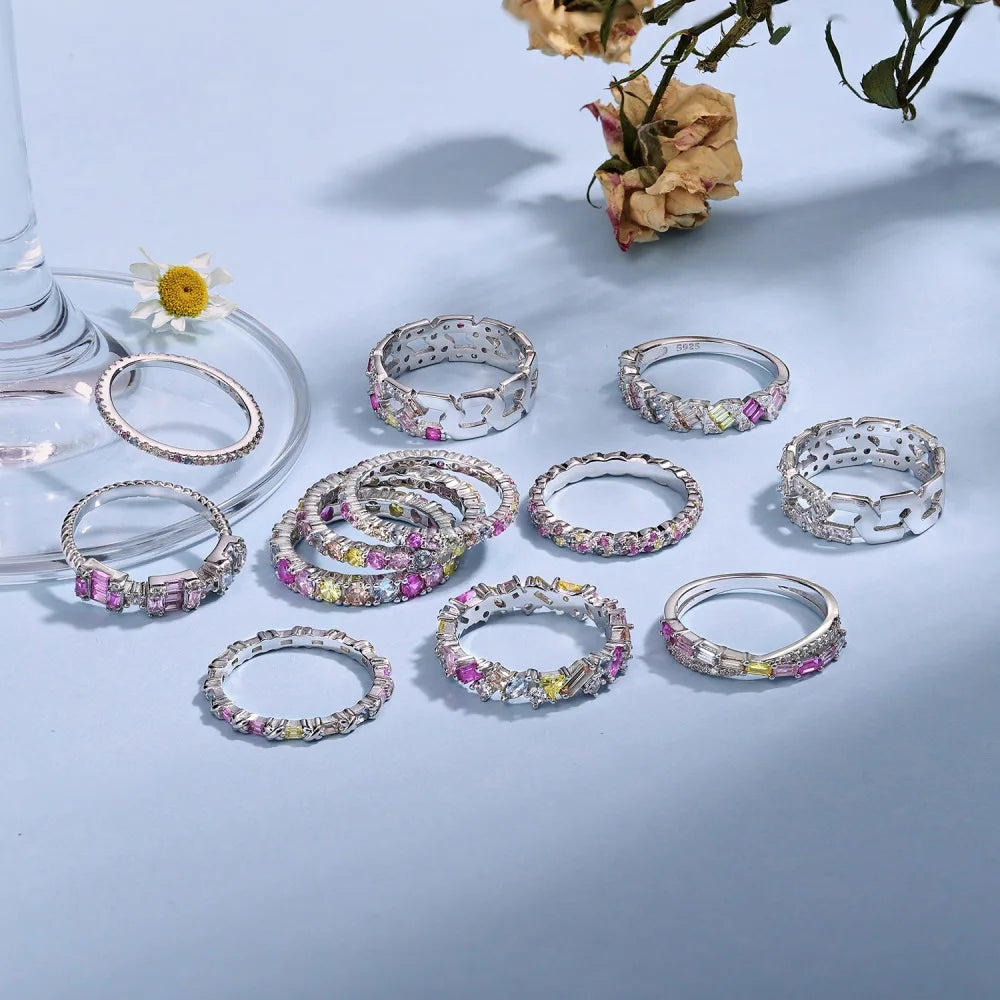 Aetolia Minimalist Personalized S925 Sterling Silver Ring Band Rainbow Colorful Pink Diamond Cz Cubic Zirconia Rings Jewelry Women