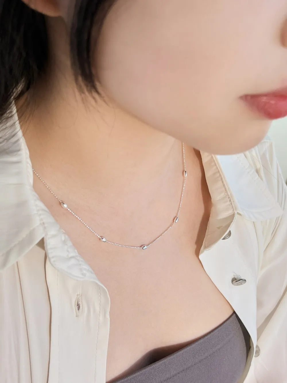 Aetolia Minimalist s925 Sterling Silver necklace Rhodium Plated Beaded Chain Necklace for Women Fine Fashion Jewelry Jewellery