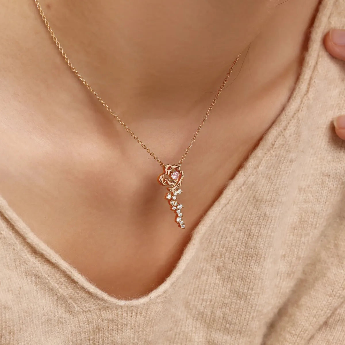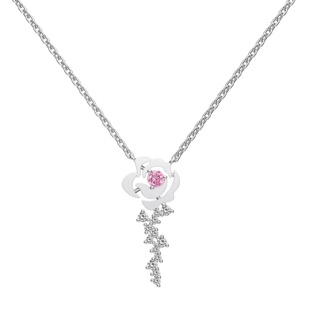 Aetolia Mother'S Day Gift Elegant Cz Zircon Necklace Rose Gold Camellia Flower Pendant S925 Silver Necklace For Women Mom Jewelry