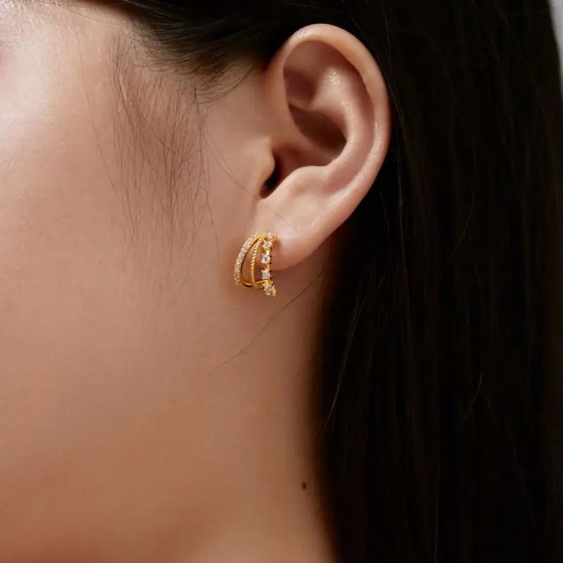 Aetolia Multi Layer 18K Gold Plated Twist Hoop Earring Cz Cubic Zircon Jewelry S925 Sterling Silver Stud Earrings Women For Party