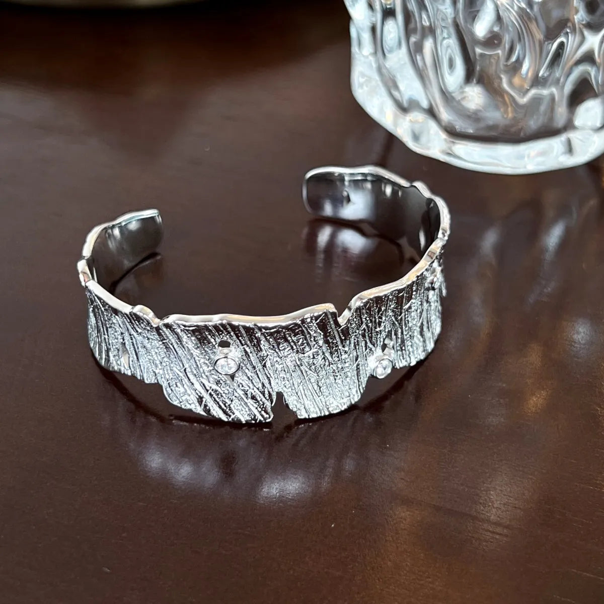 Aetolia New Arrival Irregular Bark Texture Jewelry 925 Sterling Silver Bracelet Hollow Diamond Opening Bracelets Bangles For Women