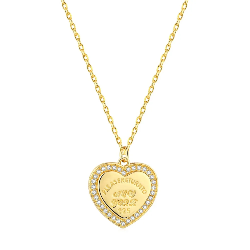Aetolia New Arrival Verified Factory 18K Gold Plated Love Big Heart Shaped Letter Pendant S925 Small Zircon Necklace Link For Girl