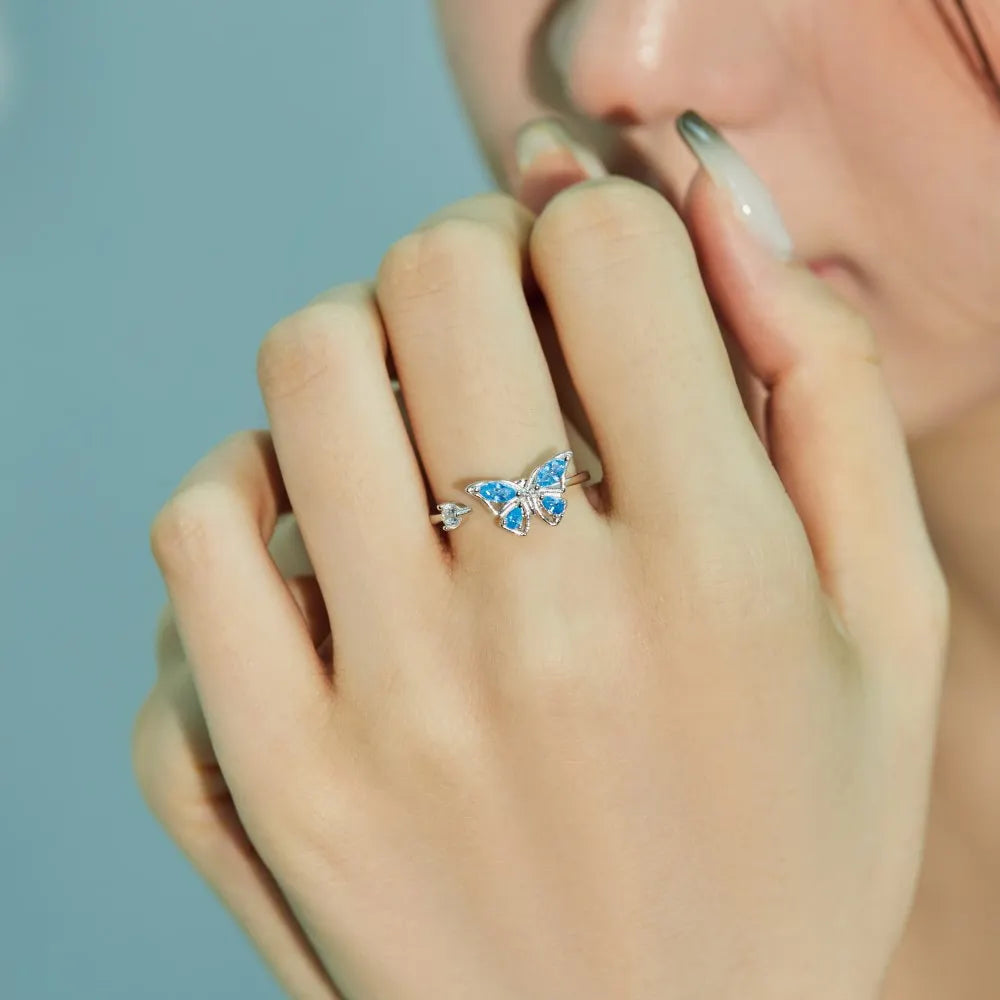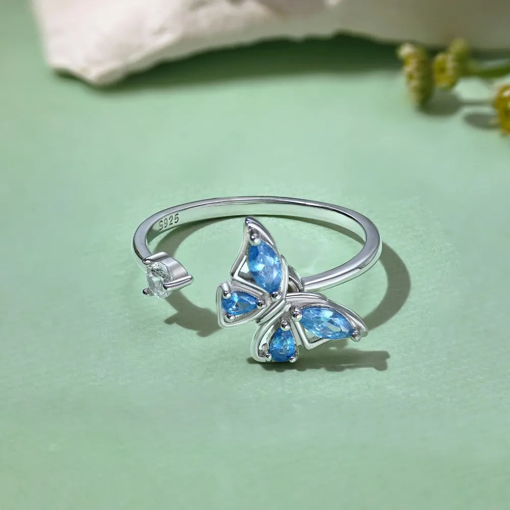 Aetolia New Rotatable Blue Cubic Zircon Anxiety Butterfly Ring Open Adjustable 925 Sterling Silver Butterfly Rings Jewelry Women