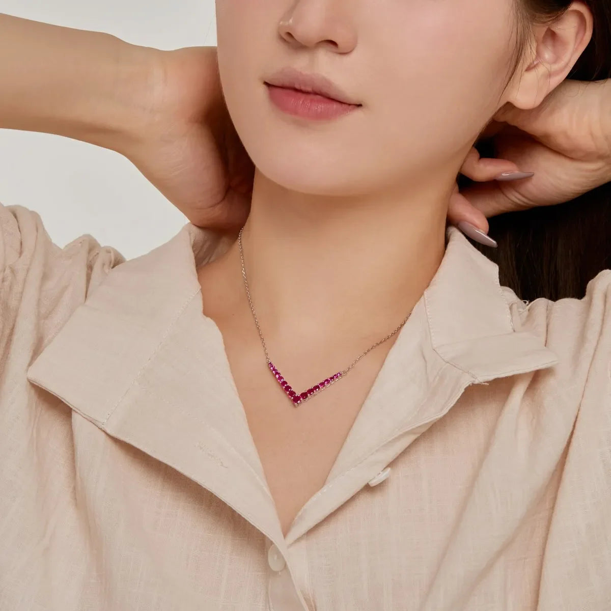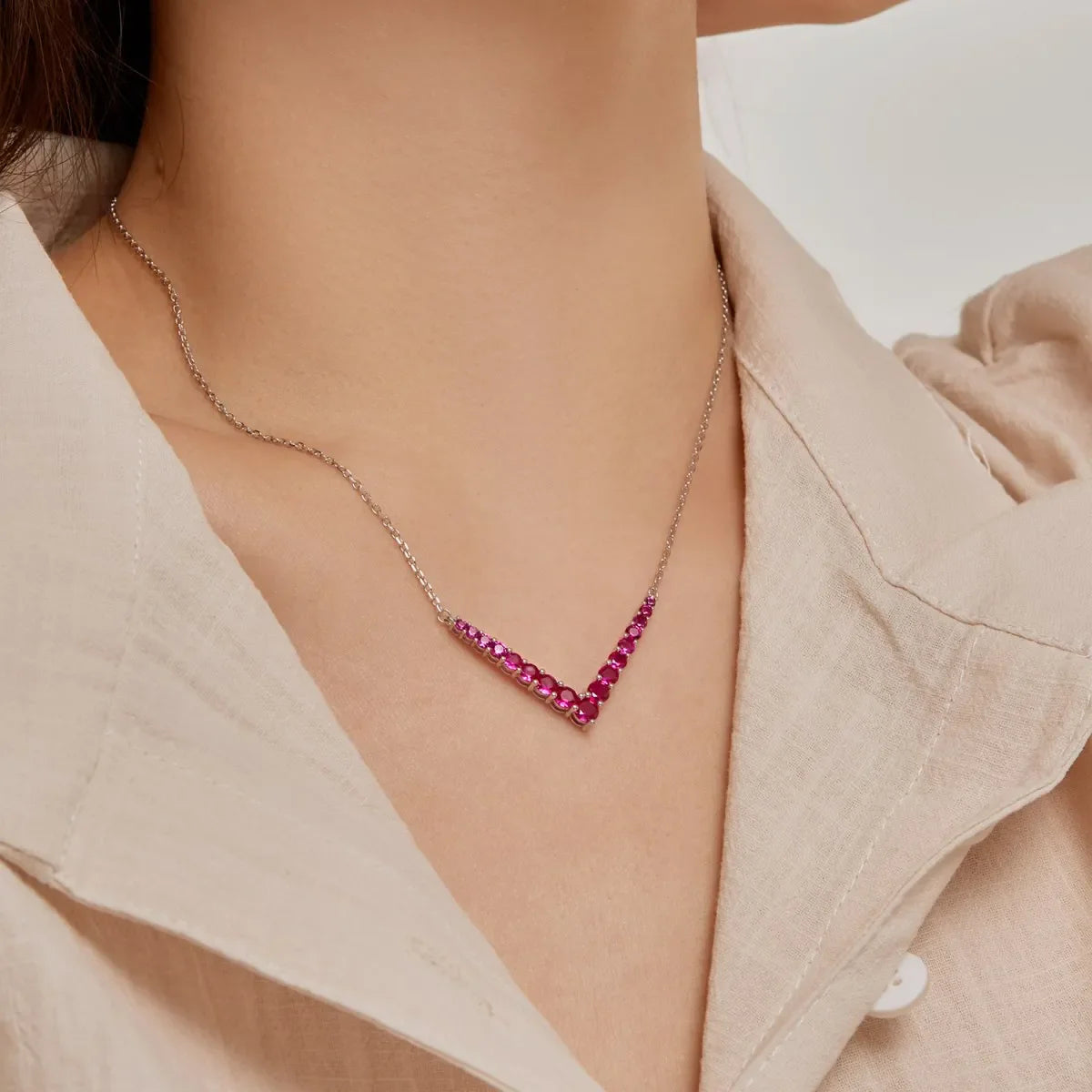 Aetolia No Moq Emerald Pink Colorful Zirconia Long Chain V Shape Link Necklace 925 Sterling Silver Pendant Necklaces For Women