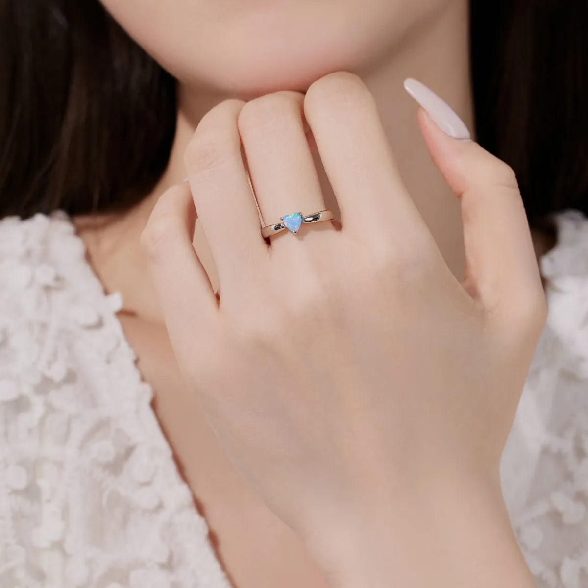 Aetolia No Moq Minimalist Female Blue Opal Stone Ring Fine Jewelry Charm 925 Sterling Silver Love Heart Rings For Women Girl Gift