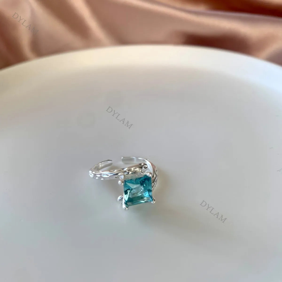 Aetolia Punk Handmade Jewelry lightweight Sterling Silver 925 Lava Style Open Ring Fine Polishing Square Cut Cubic Zircon Rings