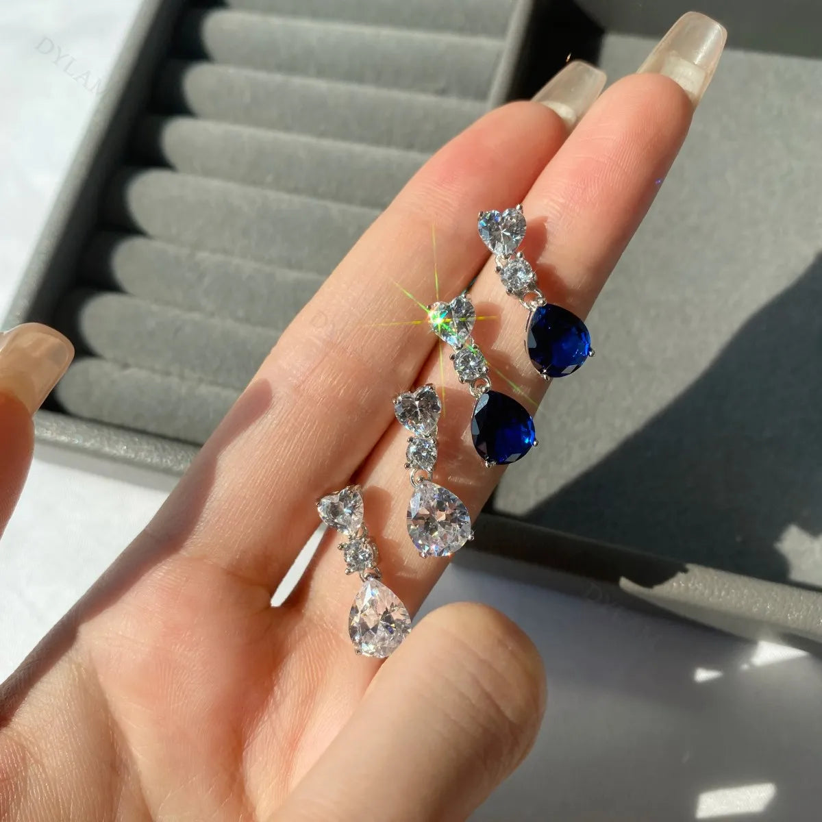 Aetolia S925 Sterling Silver Long Cubic Zirconia Delicate Blue Sapphire Drop Earring Engagement Party Wear Earrings For Women