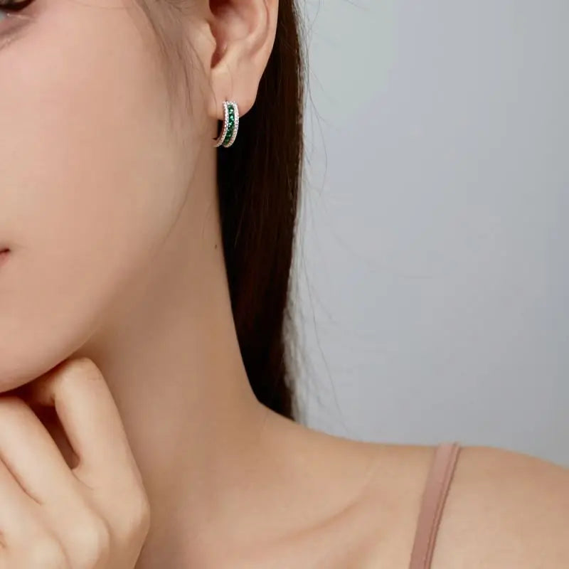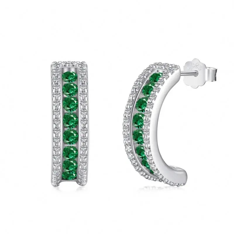 Aetolia S925 Sterling Silver Round Half Hoop Jewelry Female C-Shaped Earring Cz Cubic Zirconia Green Emerald Stud Earrings Women