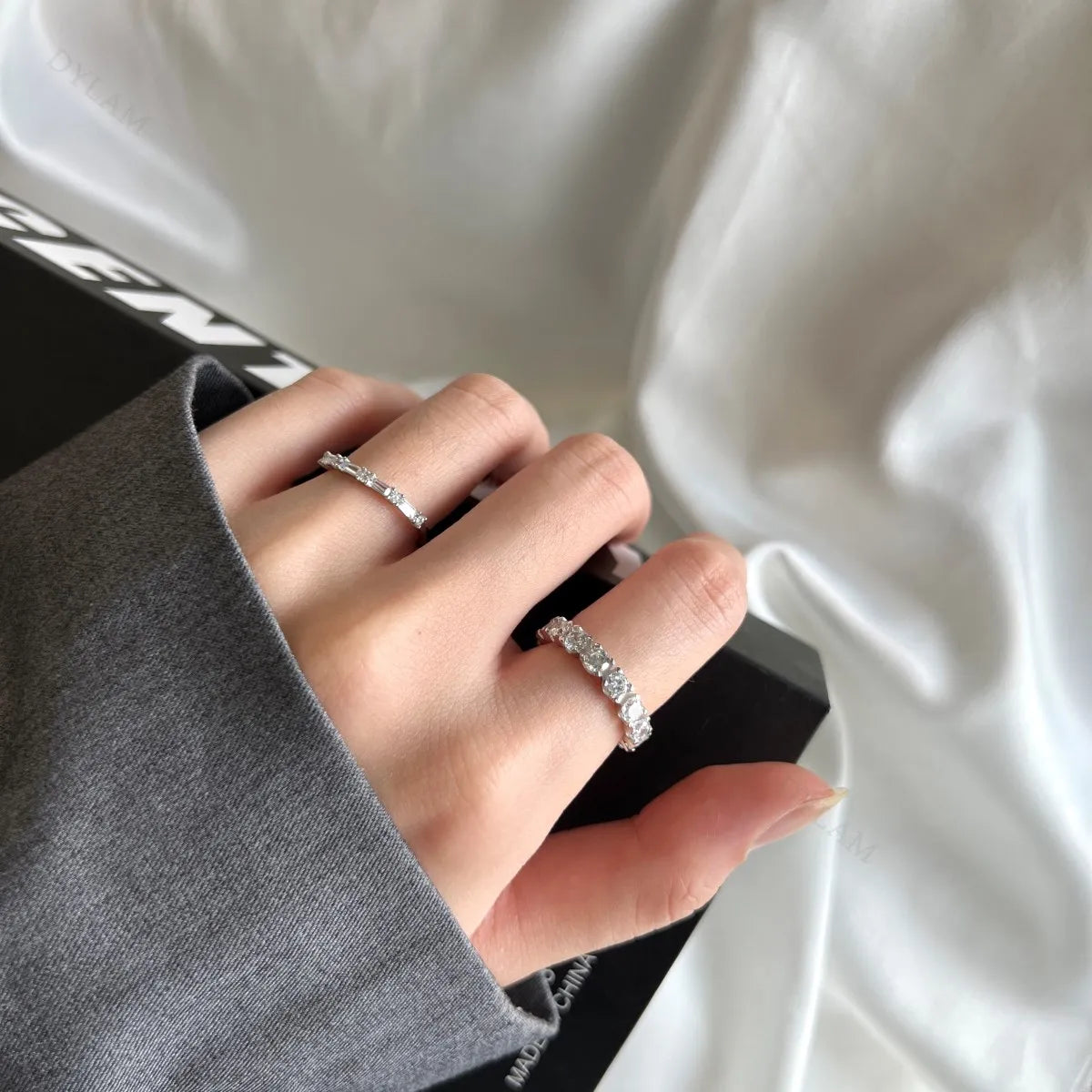 Aetolia S925 Wholesale Plated Sterling Silver Rings CZ Simulated Diamond Stackable Engagement Ring Eternity Bands For Women Gift