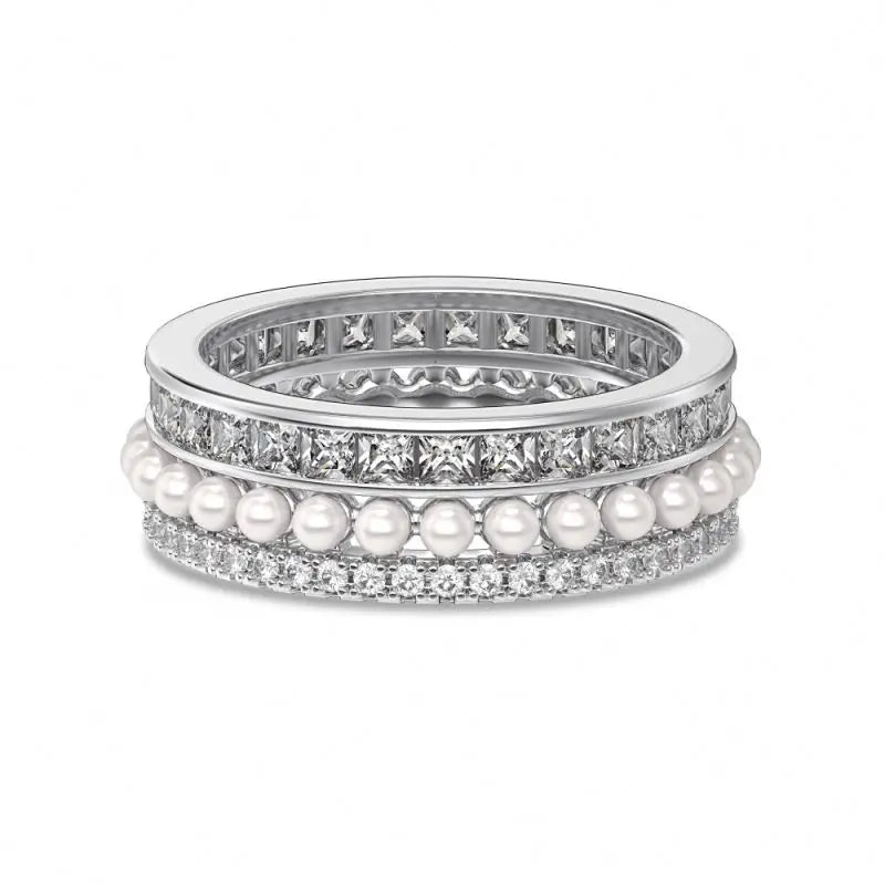 Aetolia Square Cz Zirconia Eternity Band Ring Jewelry Iced Out Chunky Baguette Engagement Wedding Shell Pearl Rings For Women