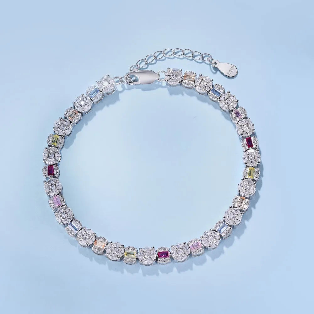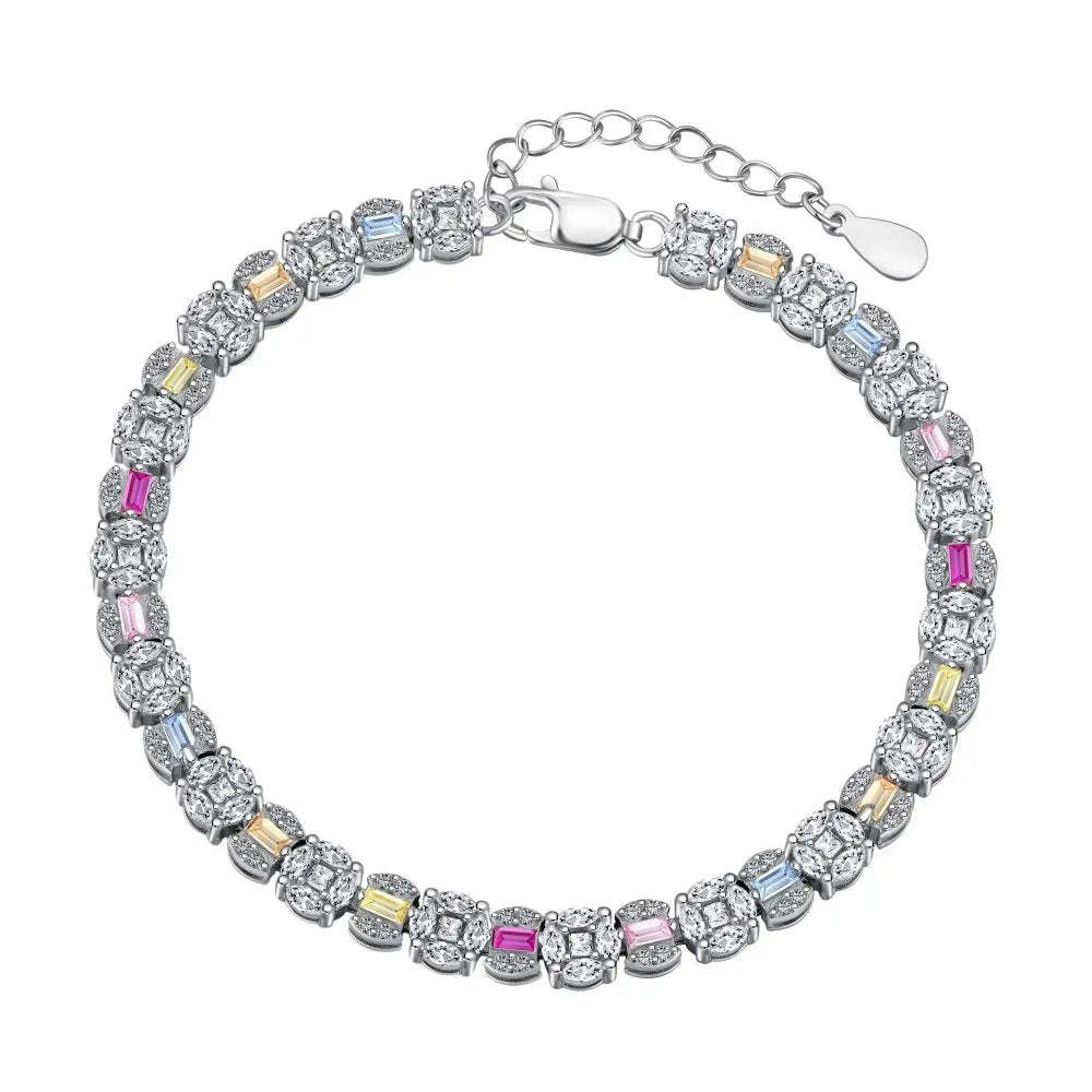 Aetolia Square Shape Colorful S925 Sterling Silver Bracelet Jewelry Set Cubic Zirconia Pink Stone Diamond Tennis Bracelets Women