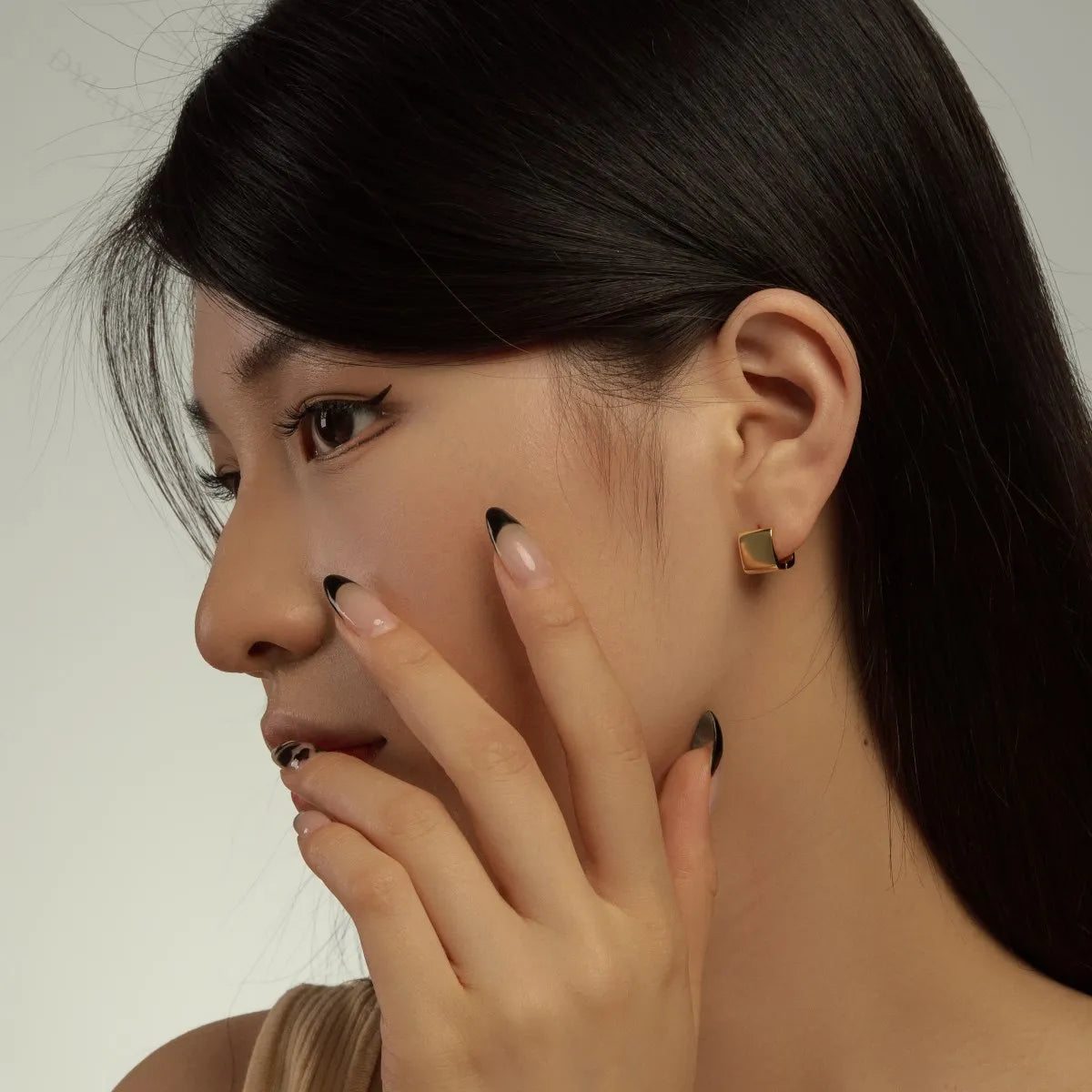 Aetolia square shape two side earring jewelry 18K gold plated sterling silver 925 statement stud clip on earrings