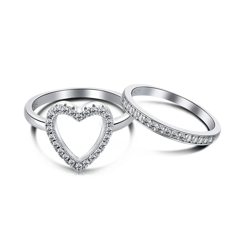 Aetolia Statement Adjustable hollow Hearts Promise Stacking Eternity Love Finger Band Jewelry Sterling Silver 925 Hear ring set