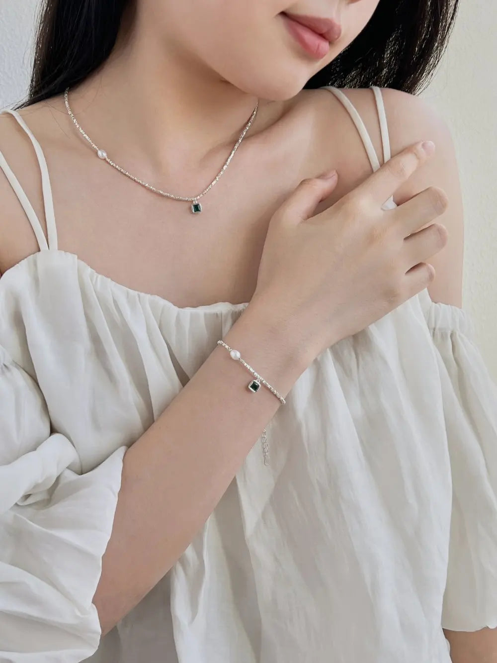 Aetolia Stylish 925 Sterling Silver Fresh Water Pearl necklace Broken Beaded Emerald 5A Cubic Zirconia Pendant Necklaces for women
