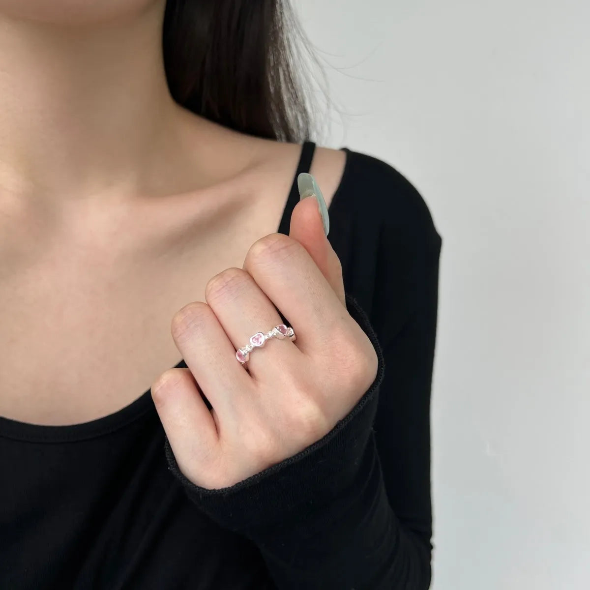 Aetolia Sweetie Cool Stylish Jewelry Cute Pink Zircon Finger Rings For Women Girls Pink Heart Shape S925 Sterling Silver Open Ring