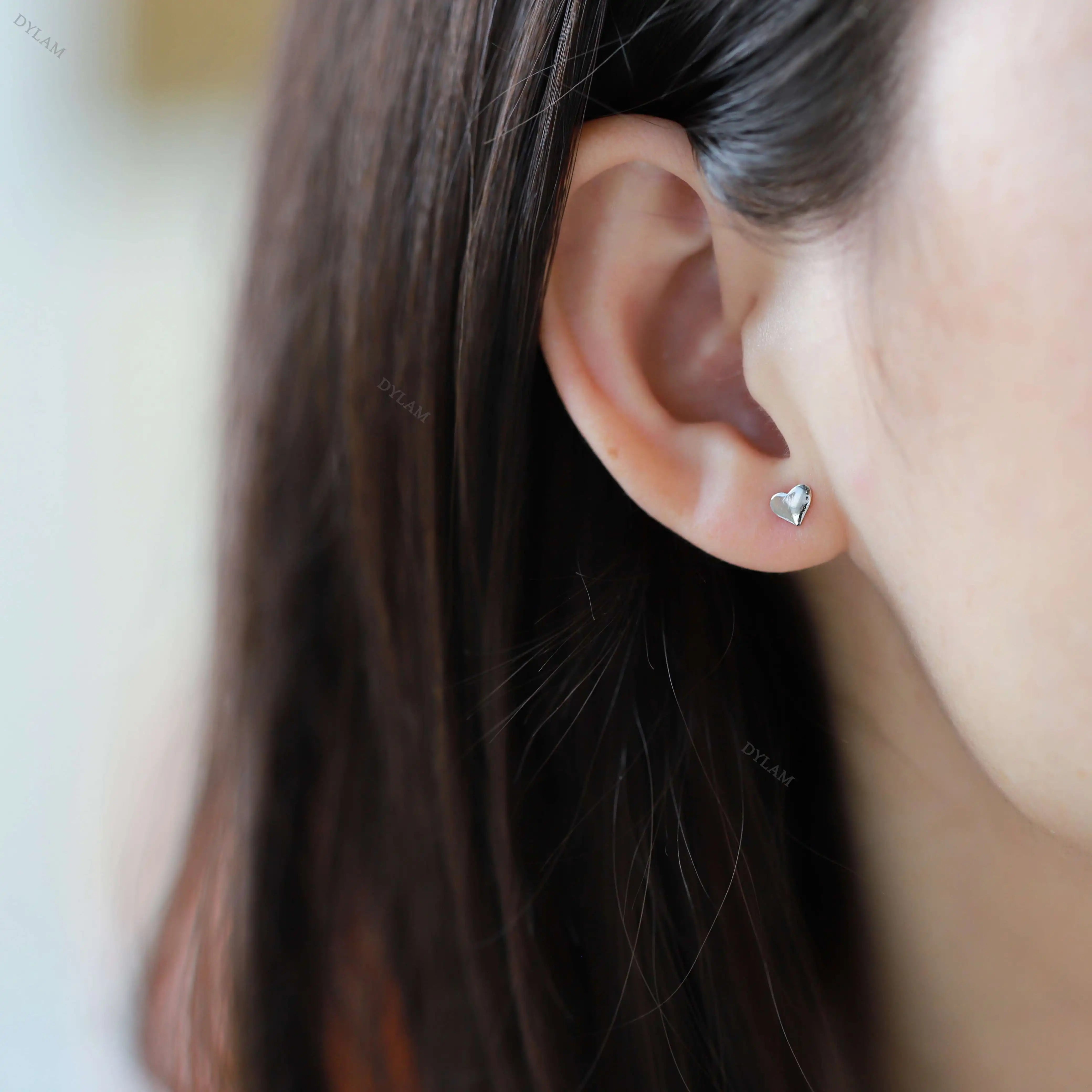 Aetolia Tiny Cute Kids Sensitive Girls Yellow Gold 5mm Small Love Knot Ear aretes jewelry 925 Sterling Silver Heart Stud Earring