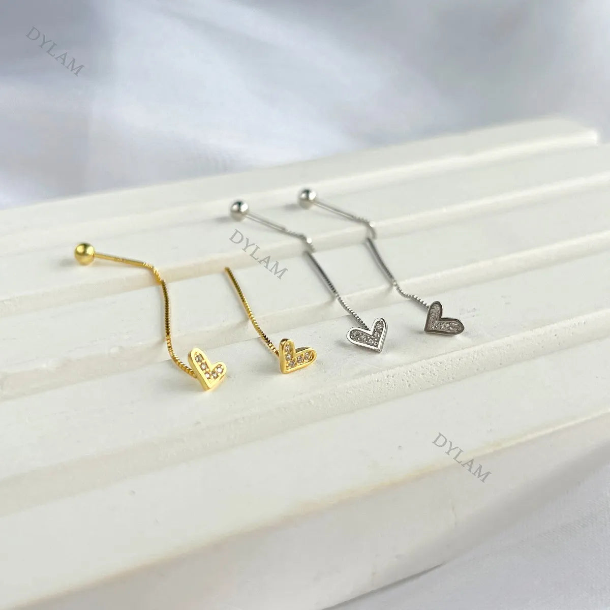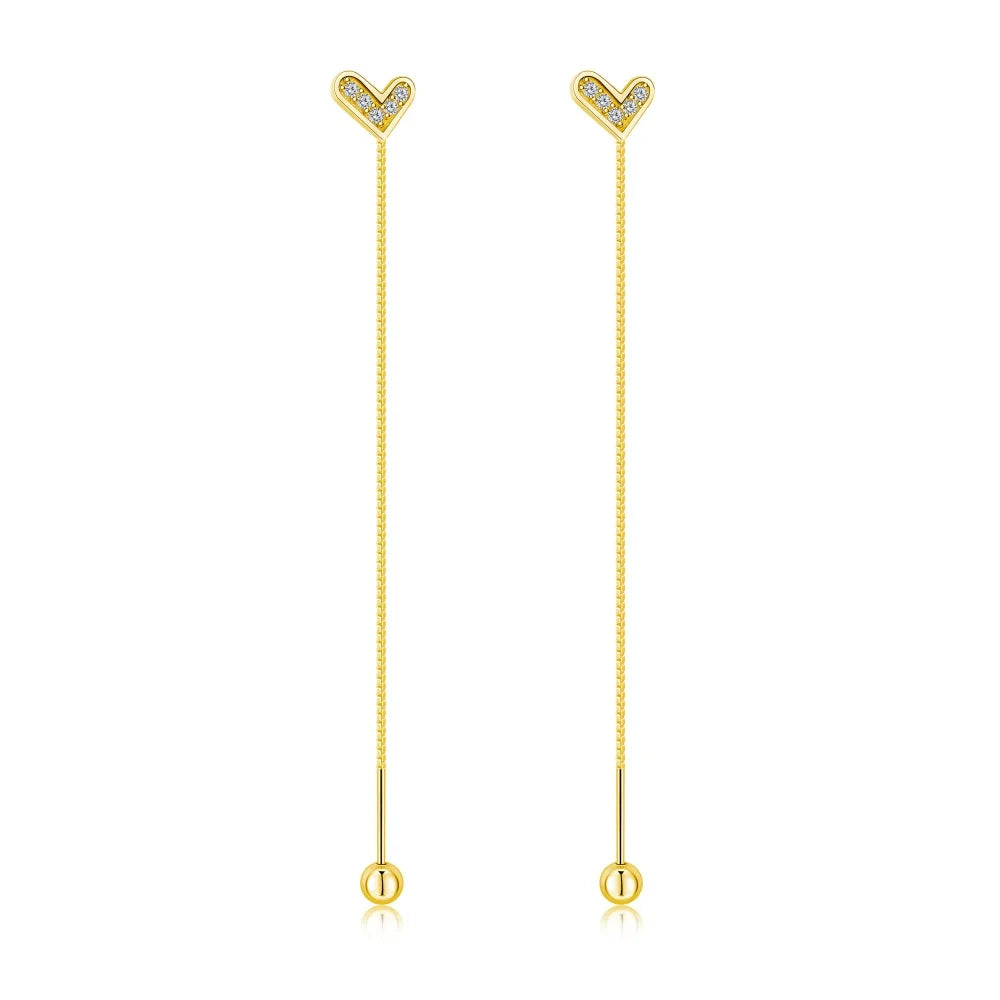 Aetolia trendy 65mm long tassel mini style love heart shape earring 18K gold color S925 jewelry sterling silver screw earrings