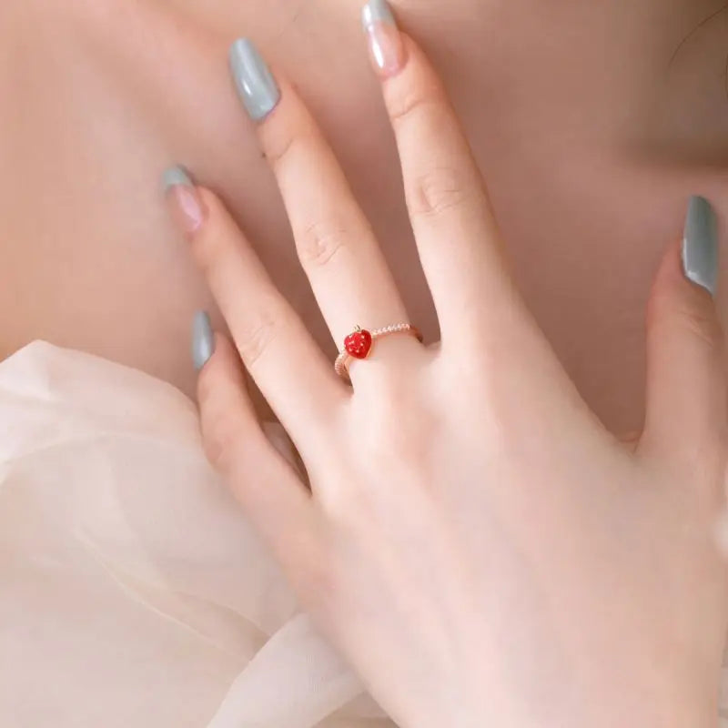 Aetolia Trendy Cutie Sweet Cherry Strawberry Diamond S925 Silver Ring Rose Gold Plated Finger Rings Jewelry Girl Women Gifts