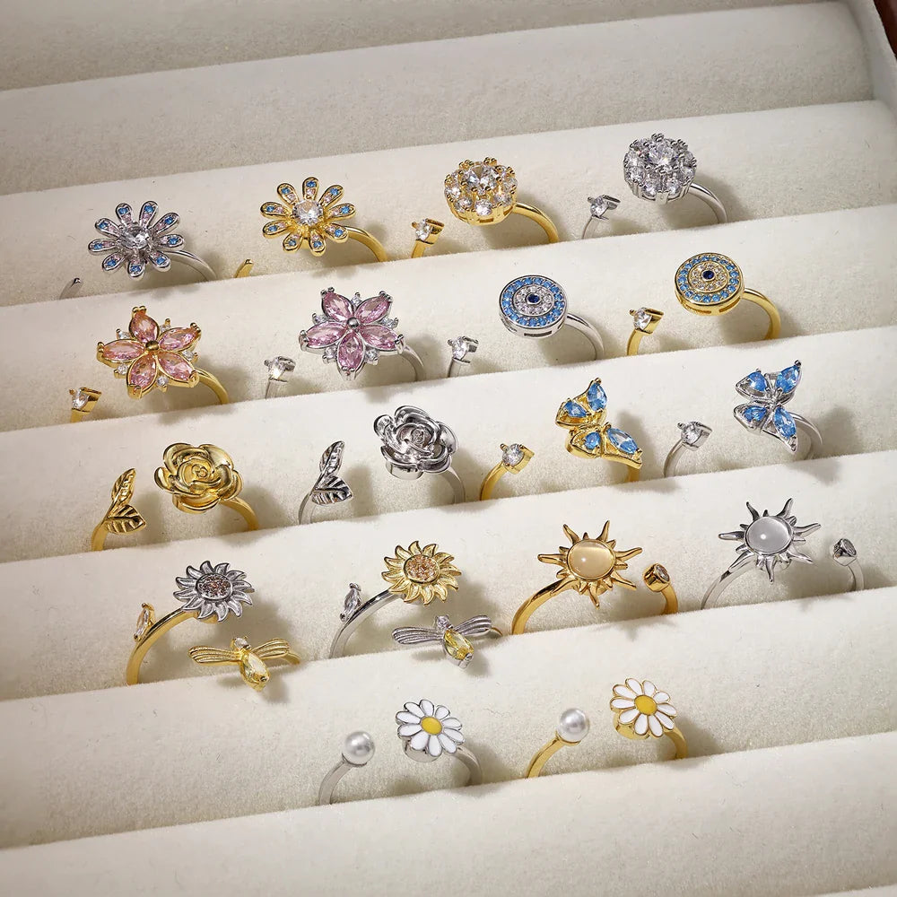 Aetolia Trendy Rotating Spinning Anxiety Women Ring Jewelry 18K Gold Plated Custom Sun Flower S925 Sterling Silver Spinner Rings